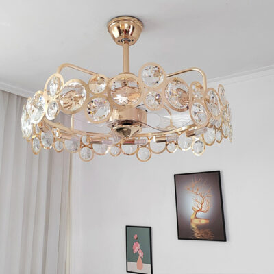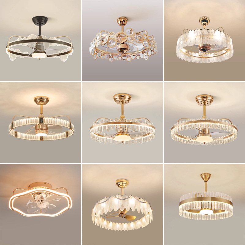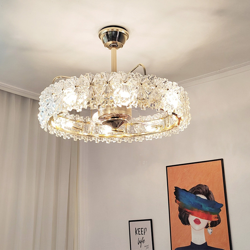 Sáng Tạo Kính Pha Lê Quạt Đèn Ánh Sáng Phòng Khách Sang Trọng Phòng Ăn Phòng Ngủ Nghiên Cứu Phòng Trẻ Em Đơn Giản Quạt Trần Đèn Chùm