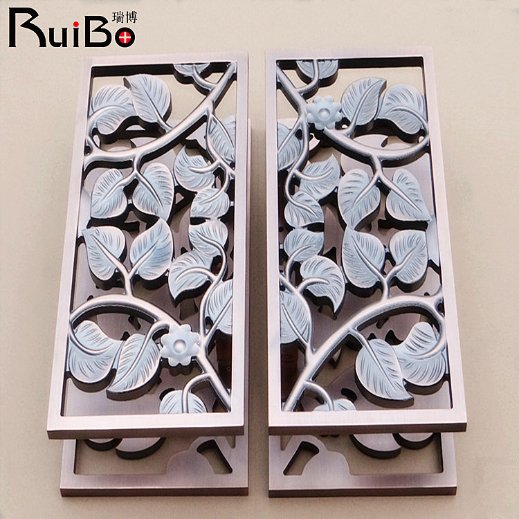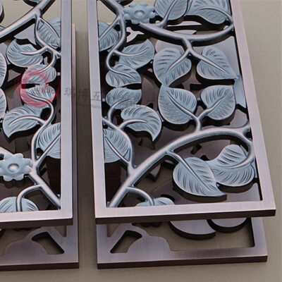Sáng tạo mới phong cách Trung Quốc bằng nhôm nguyên khối chạm khắc đám mây tốt lành màu xanh lá cây bằng đồng tay nắm cửa hình bán nguyệt cửa kính hình chiếc lá màu xanh lá cây tay nắm cửa bằng gỗ