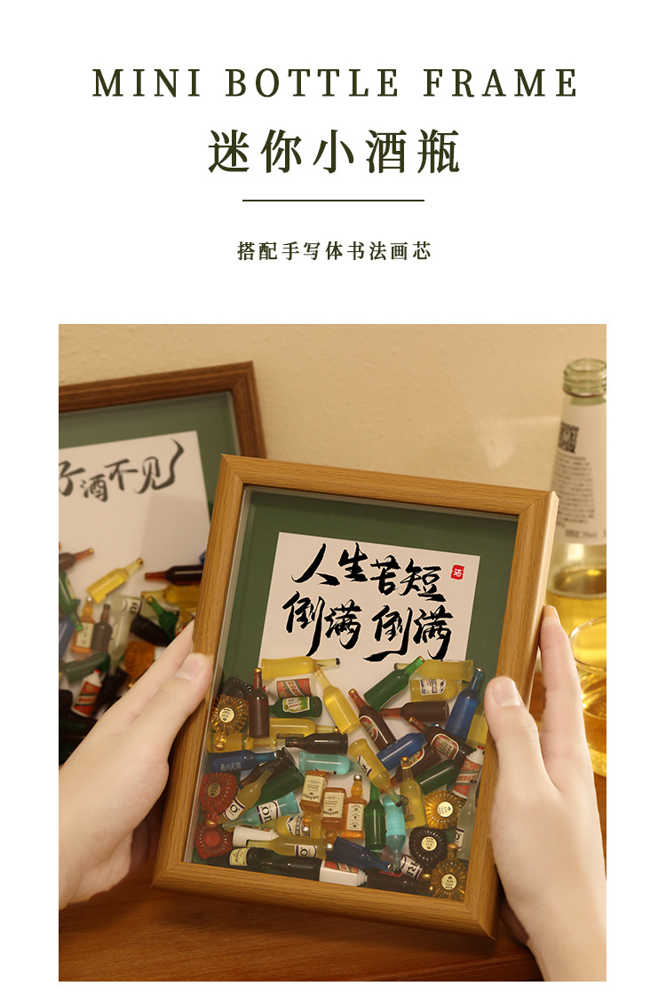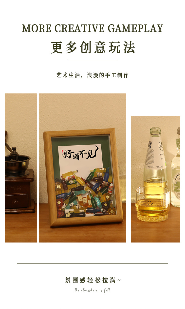 Thương hiệu: Kefan Impression Mã sản phẩm: 3015-XJP Các tình huống áp dụng:: Tặng quà hàng ngày Chất liệu: bảng mật độ Không gian: phòng khách/phòng ngủ/phòng học/hiên/hiên Loại trang trí: Đồ trang trí để bàn Xử lý và tùy chỉnh: Không Phong cách: Thủ công tối giản hiện đại : Khung bên trong thủ công Kích thước: màu óc chó [thiếu rượu ngon] + chai rượu nhỏ mô phỏng (khoảng 45-50 chiếc) + keo cồn miễn phí/màu óc chó [đổ đầy] + chai rượu nhỏ mô phỏng (khoảng 45-50 chiếc) + keo cồn miễn phí /Màu gỗ nguyên bản [thiếu rượu ngon] + chai rượu nhỏ mô phỏng (khoảng 45-50 chiếc) + keo cồn miễn phí / Màu gỗ [đổ đầy] + chai rượu nhỏ mô phỏng (khoảng 45-50 chiếc) + keo cồn miễn phí/ Màu óc chó [không copywriting] + chai rượu nhỏ mô phỏng (khoảng 45-50 miếng) + keo cồn miễn phí/màu gỗ [không copywriting] + chai rượu nhỏ mô phỏng (khoảng 45-50 miếng) + keo cồn miễn phí/ màu óc chó -Khung ảnh đơn (không bao gồm phụ kiện trung tâm sơn)/Màu gốc-Khung ảnh đơn (không bao gồm phụ kiện trung tâm sơn)/Màu gốc-Khung ảnh đơn (không bao gồm phụ kiện trung tâm sơn) Hình dạng: hình chữ nhật Kích thước khung: 8 inch Loại: Khung ảnh