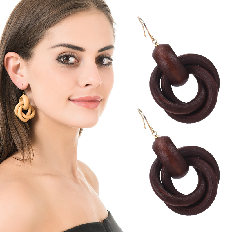 Sáng Tạo Trang Sức Âu Mỹ Retro Bông Tai Gỗ Sồi Nữ Cá Tính Xoắn Ốc Bông Tai Vòng Tròn Trang Sức Thời Trang Nhà Sản Xuất Một Dropshipping