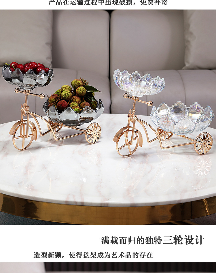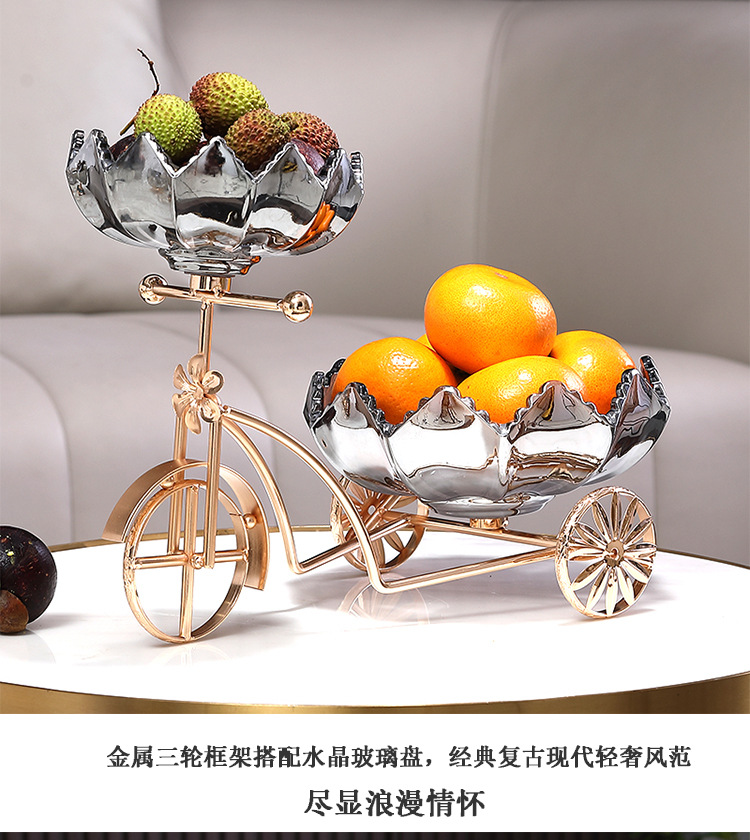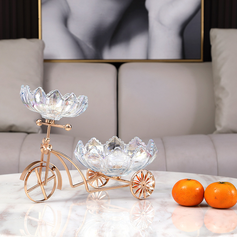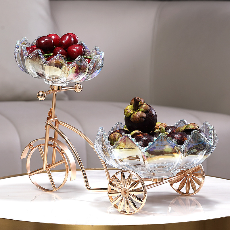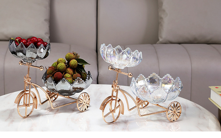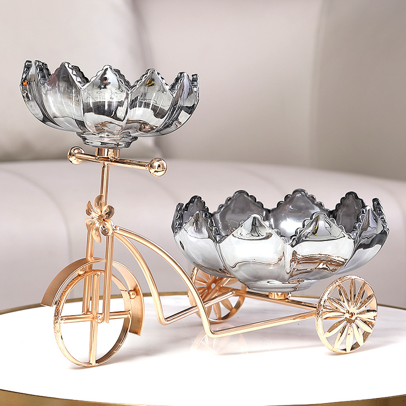 Sáng Tạo Xe Đạp Đĩa Trái Cây Tấm Kính Pha Lê Khung Kim Loại Nhà Quầy Lễ Tân Trà Cặp Đôi Giới Tính Kẹo Đĩa Đĩa Đôi