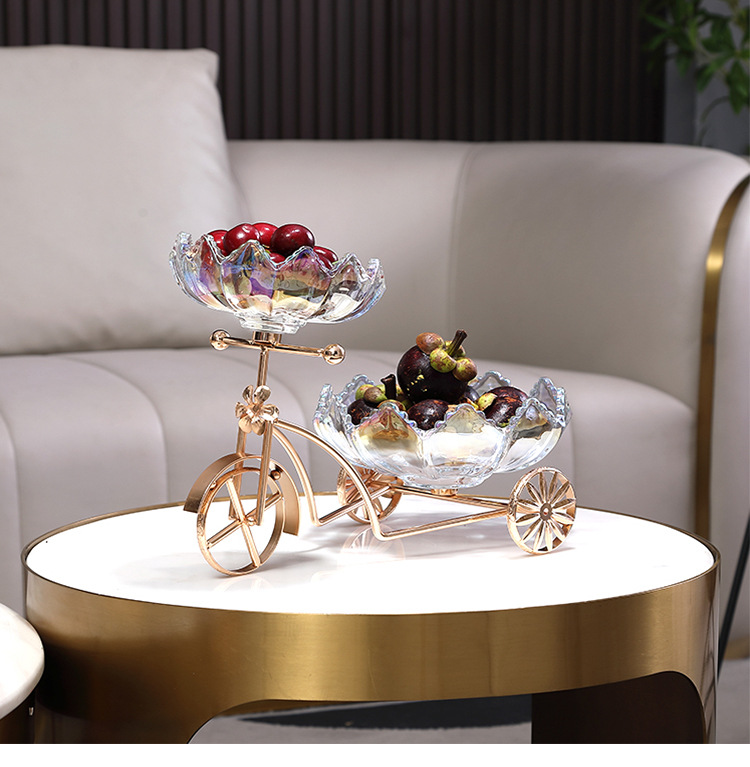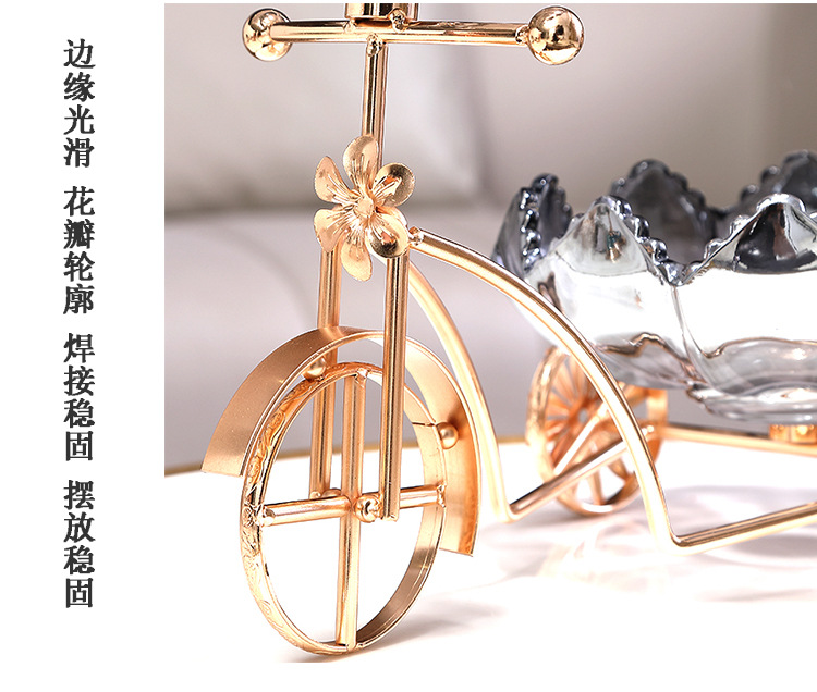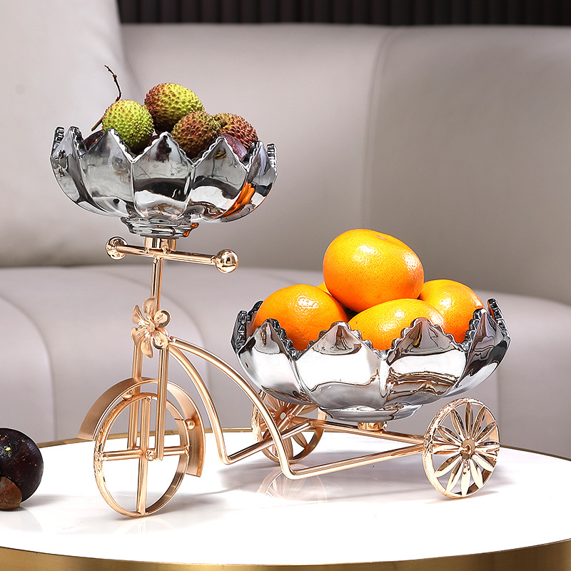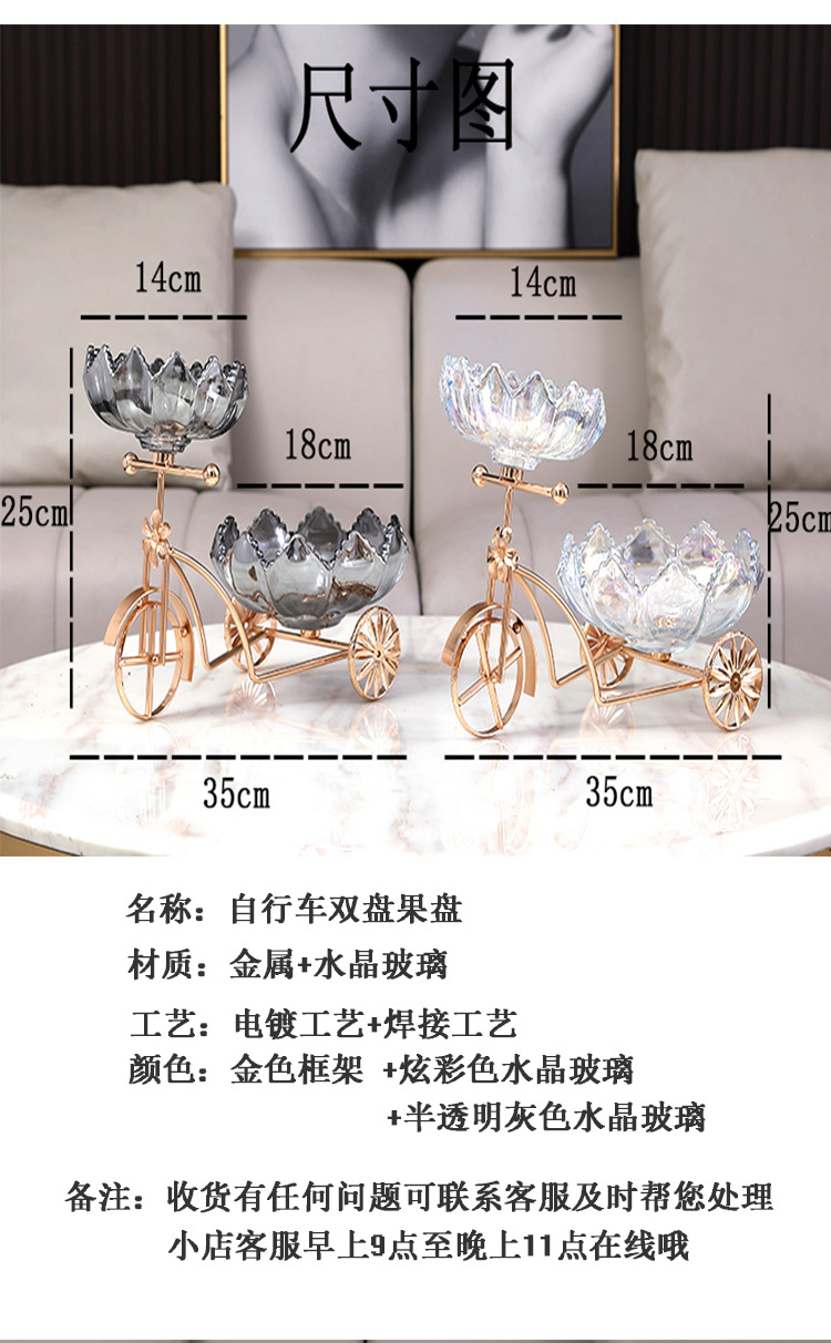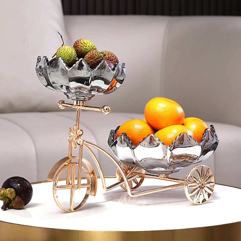 Sáng Tạo Xe Đạp Đĩa Trái Cây Tấm Kính Pha Lê Khung Kim Loại Nhà Quầy Lễ Tân Trà Cặp Đôi Giới Tính Kẹo Đĩa Đĩa Đôi
