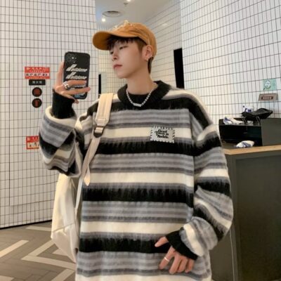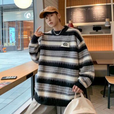 Sang trọng áo len sọc nam mùa thu đông rời ins áo khoác ngoài phong cách lười biếng bf Nhật Bản Retro hàng dệt kim sáp mềm áo khoác