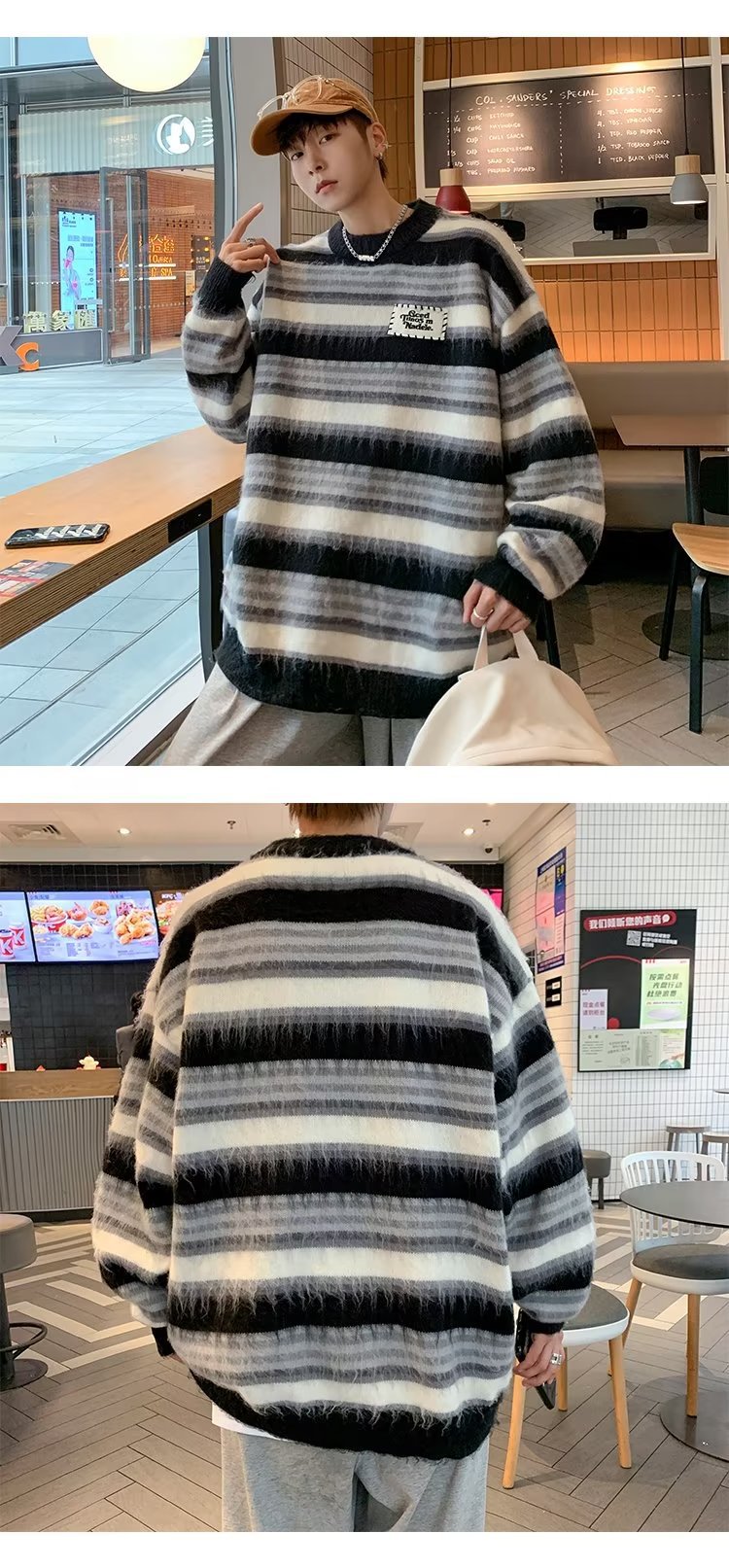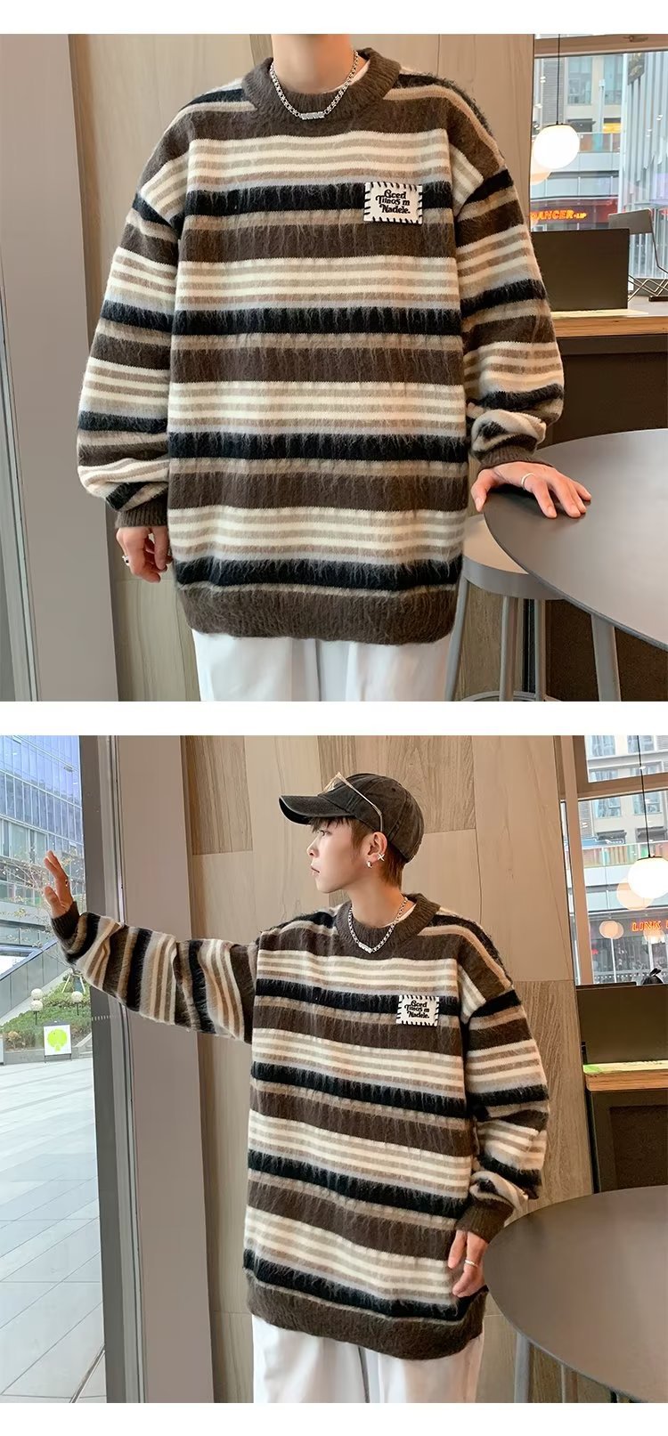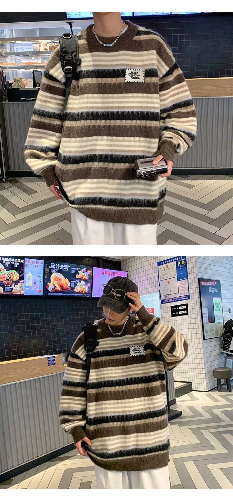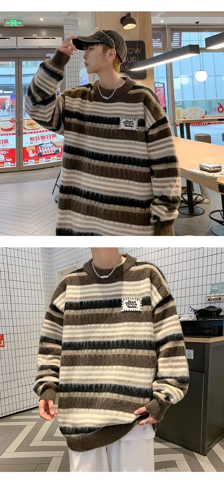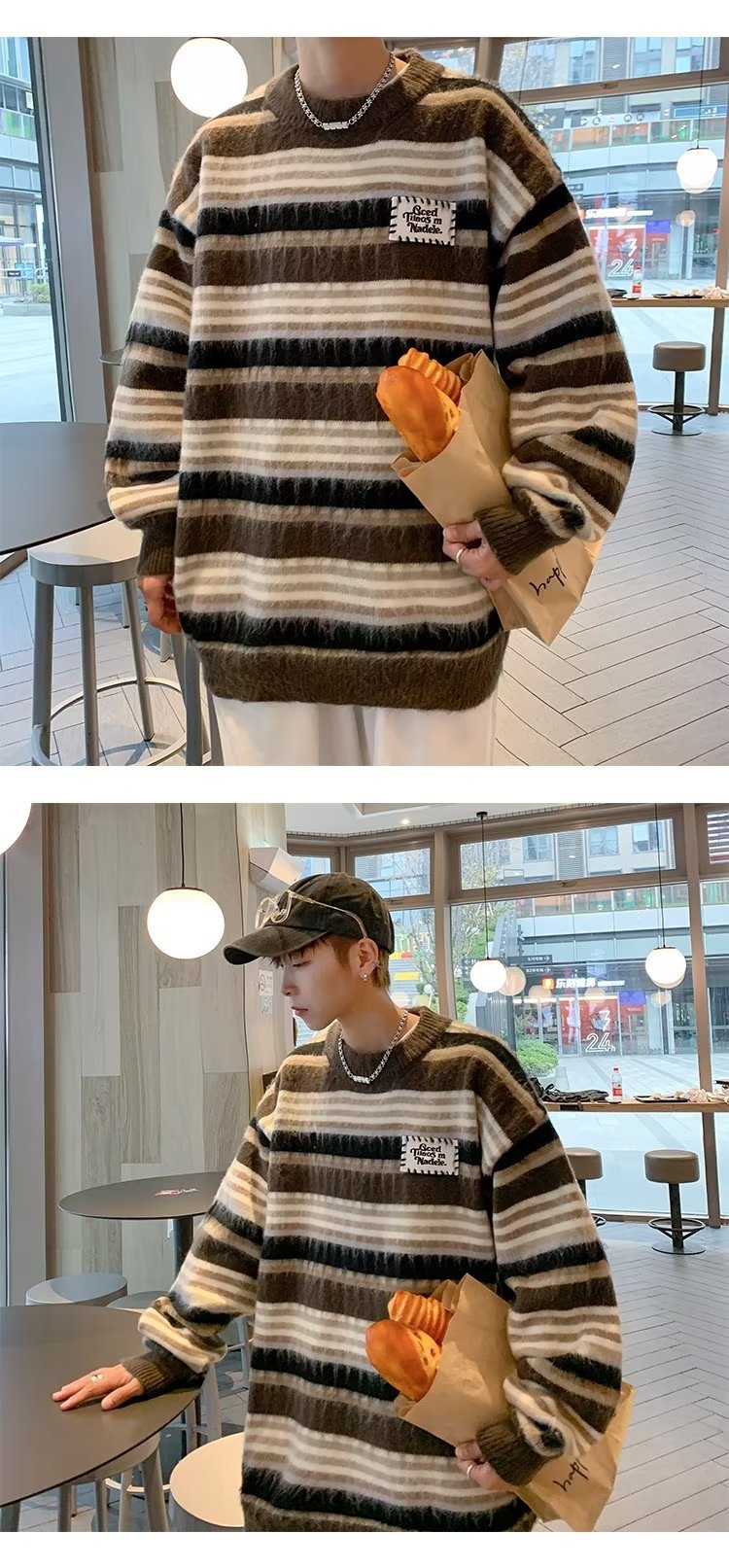 Sang trọng áo len sọc nam mùa thu đông rời ins áo khoác ngoài phong cách lười biếng bf Nhật Bản Retro hàng dệt kim sáp mềm áo khoác