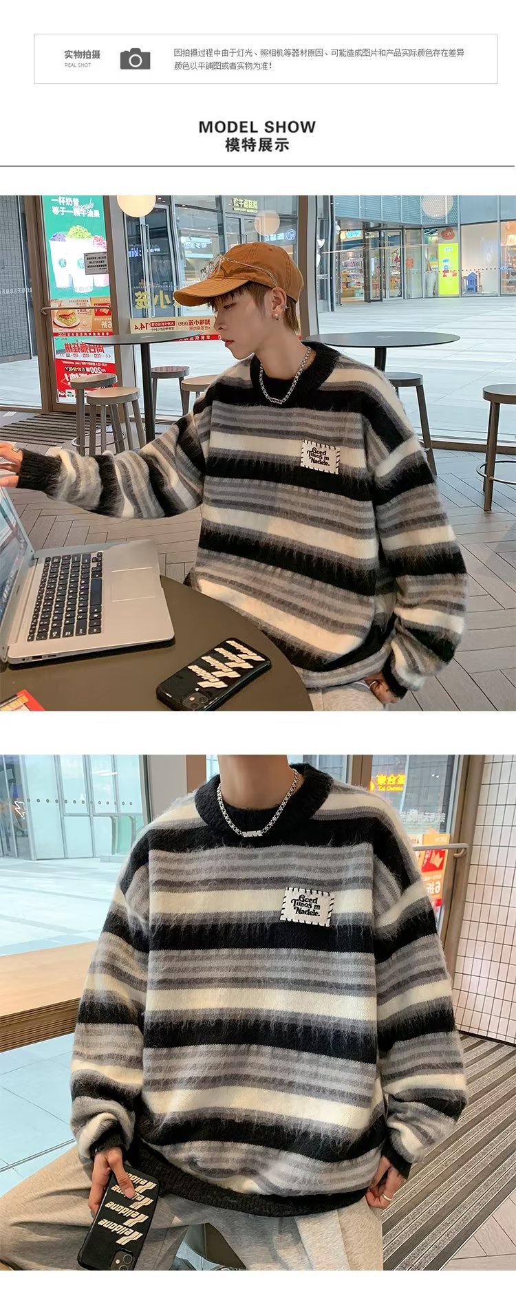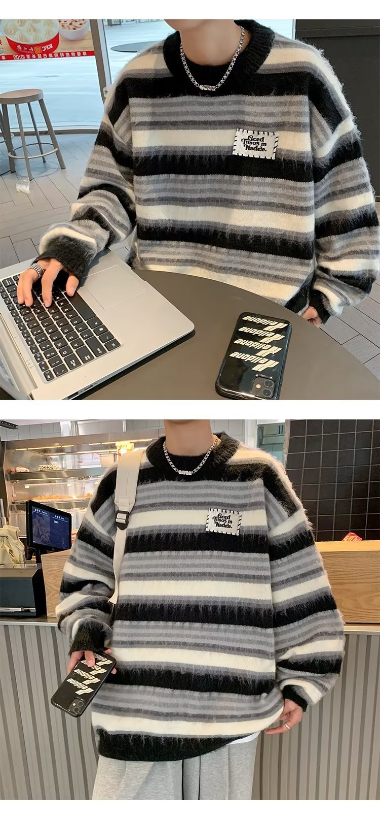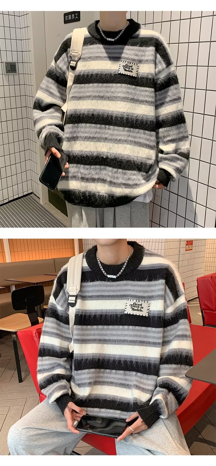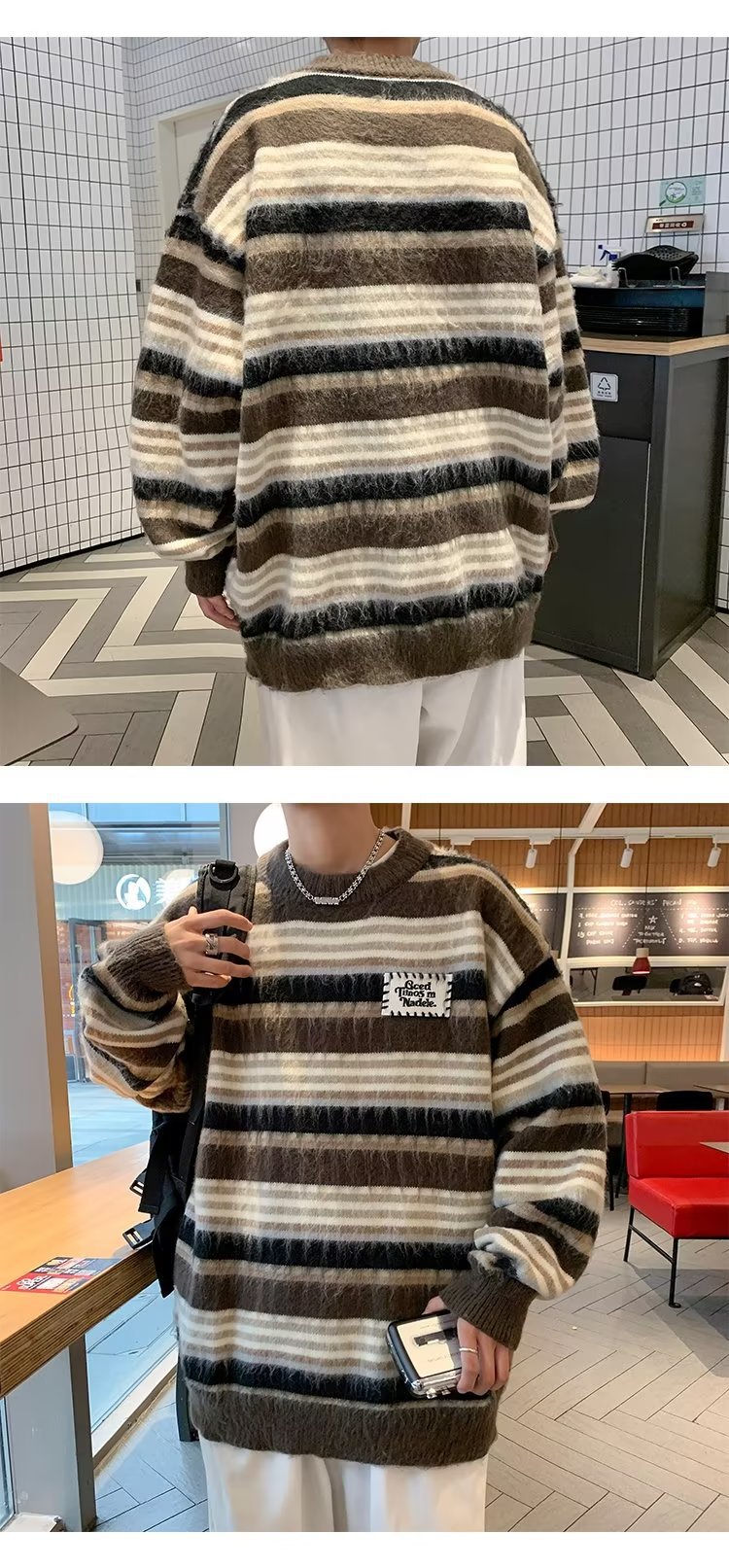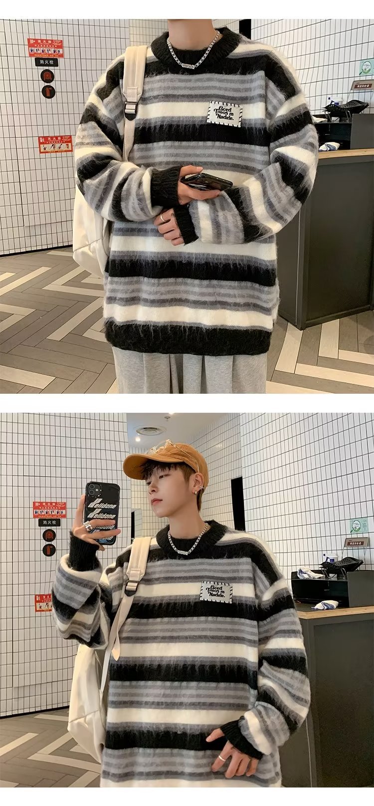Sang trọng áo len sọc nam mùa thu đông rời ins áo khoác ngoài phong cách lười biếng bf Nhật Bản Retro hàng dệt kim sáp mềm áo khoác