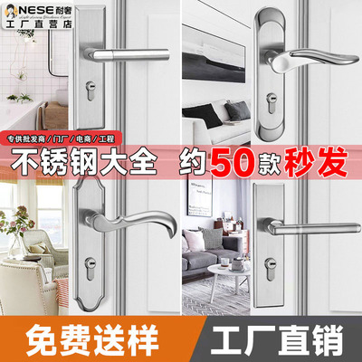 Sang Trọng Thép Không Gỉ Chia Khóa cửa Trong Nhà Cửa Gỗ Khóa Phòng Ngủ Cửa Gỗ Khuỷu Tay Lửa cách âm Khóa Bán Buôn