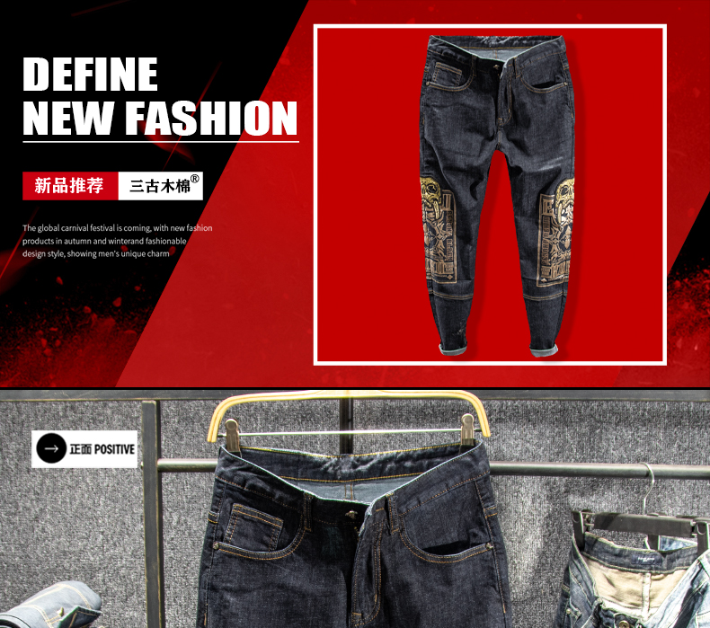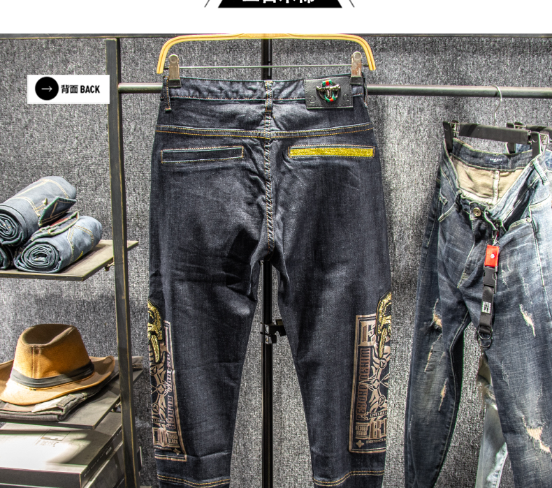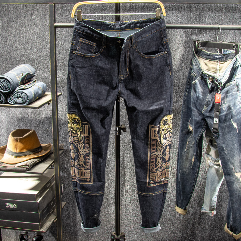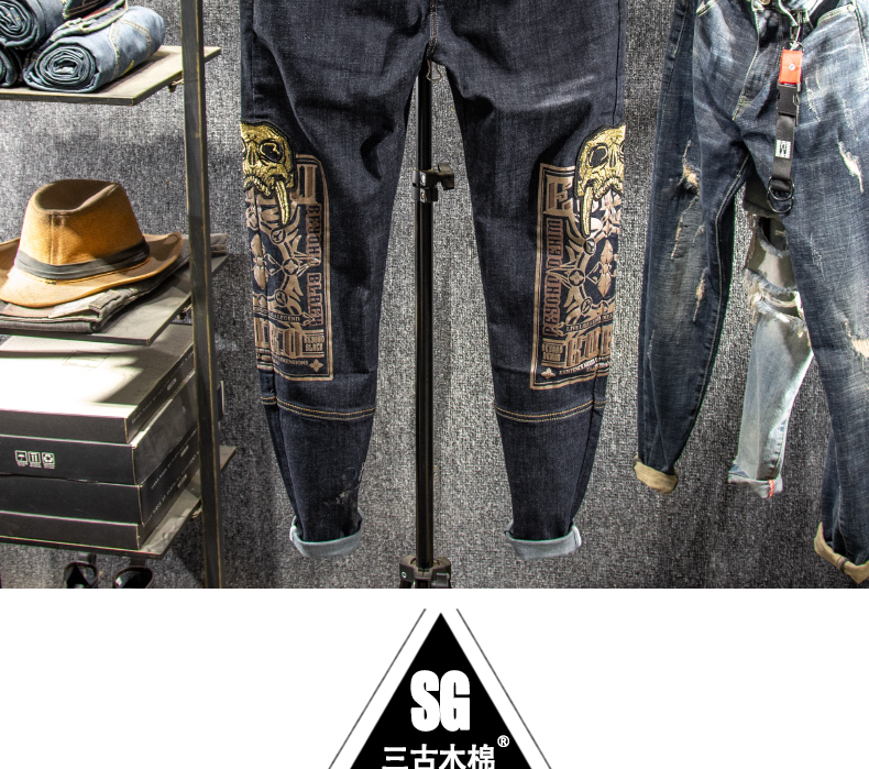 Sangu kapok cao cấp quần jean thêu nam mỏng chân nhỏ thủy triều thương hiệu mùa hè mỏng co giãn đàn hồi quần nam đẹp trai