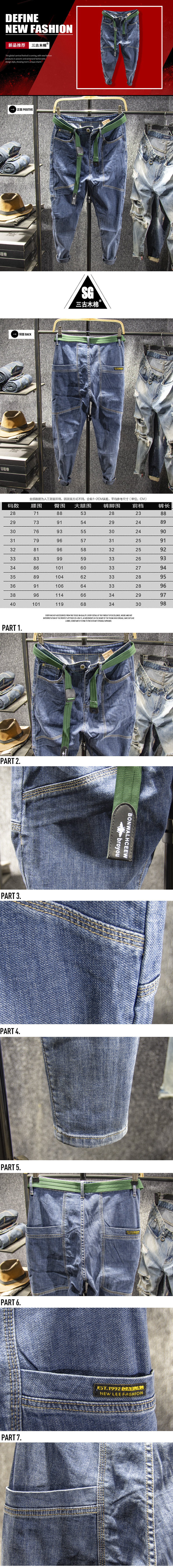 Sangu kapok Hồng Kông phong cách quần jean mùa hè của nam giới quần harem lỏng lẻo chín điểm nhỏ thủy triều thương hiệu 9 điểm quần bố nam