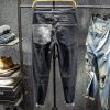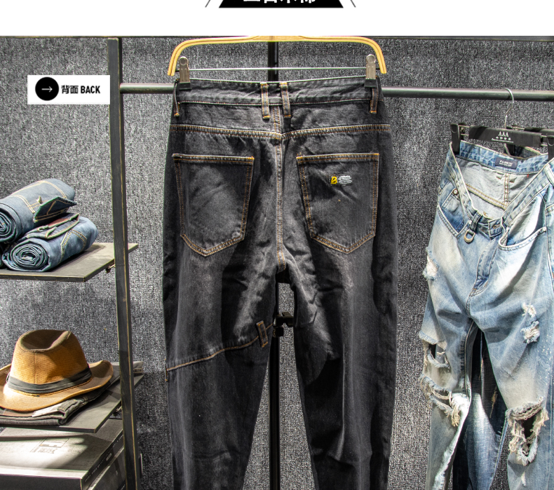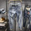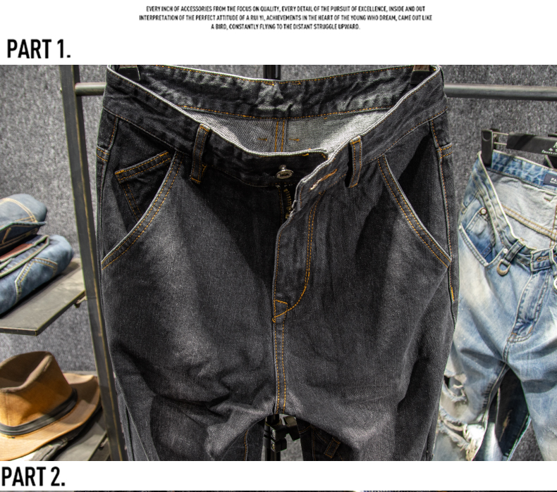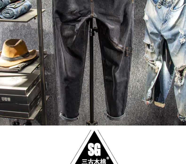 Sangu kapok triều thương hiệu thời trang quần jean nam thẳng rộng rãi cộng với kích thước quần harem đã giặt quần tất dài phù hợp
