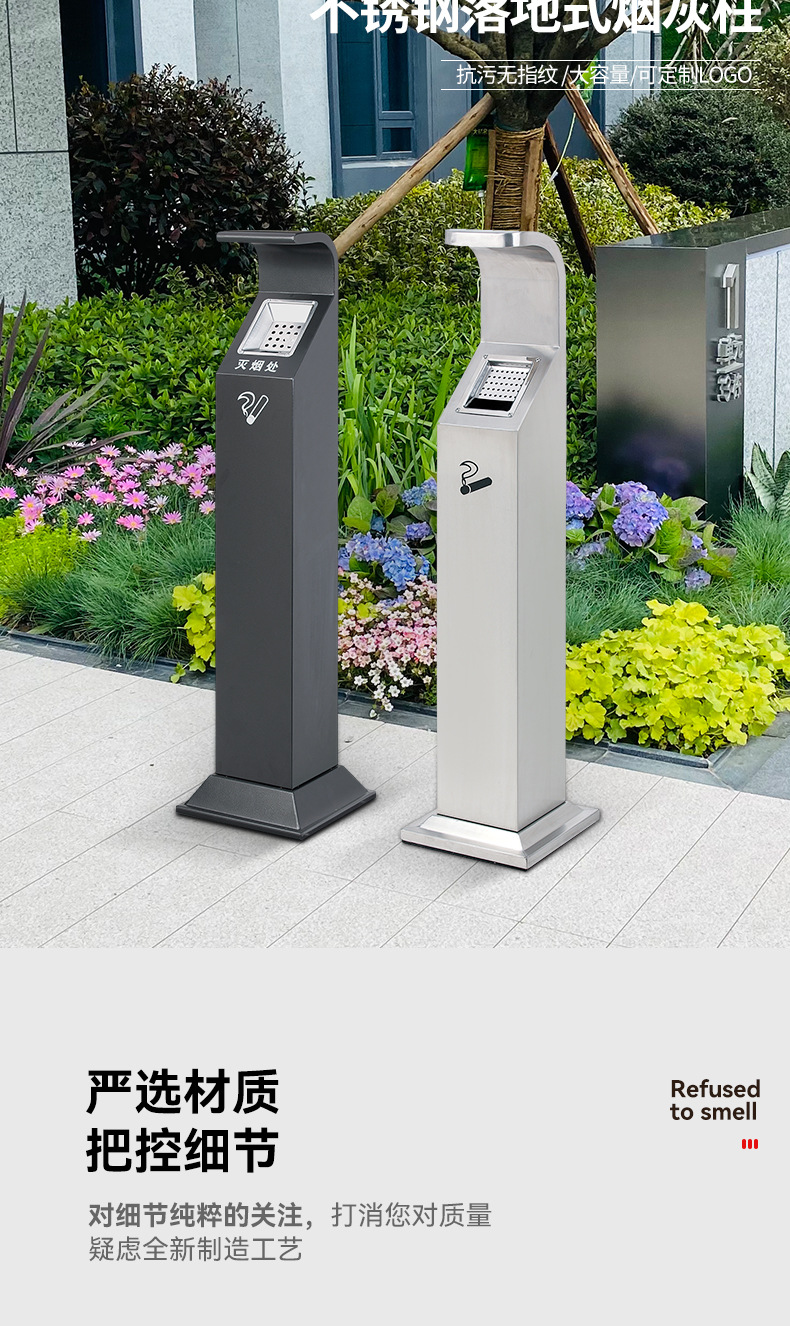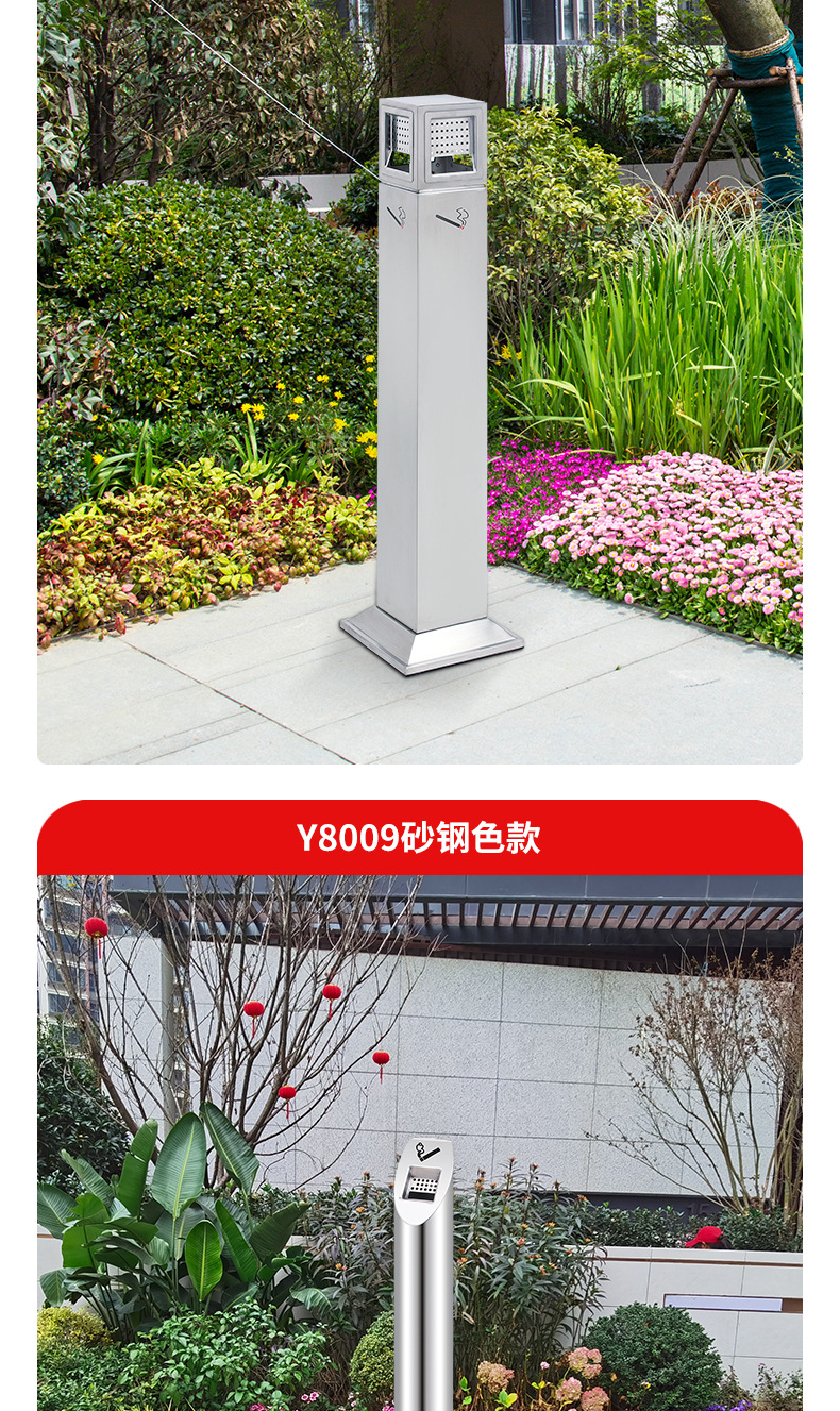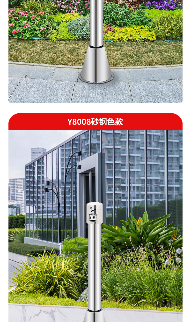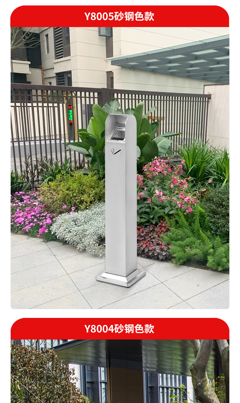 Sảnh khách sạn inox cột tro dọc thùng dập khói cố định cột tàn thuốc ngoài trời cột tro thùng rác