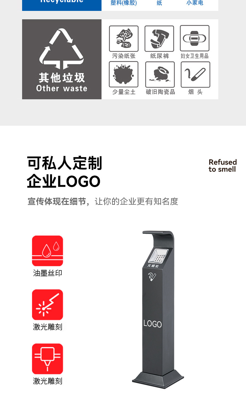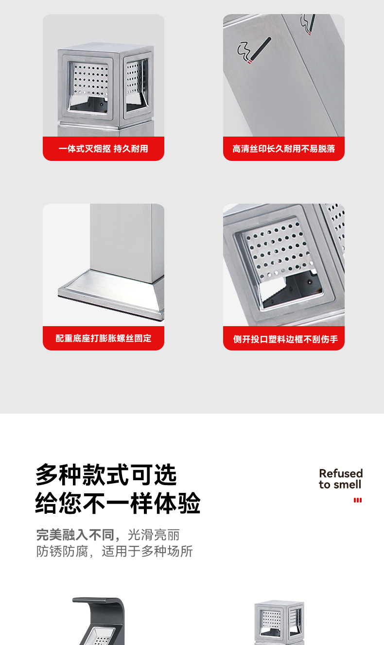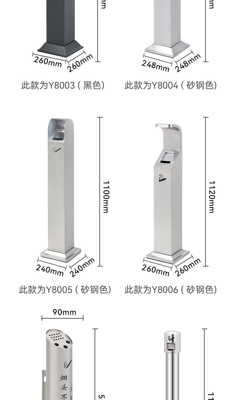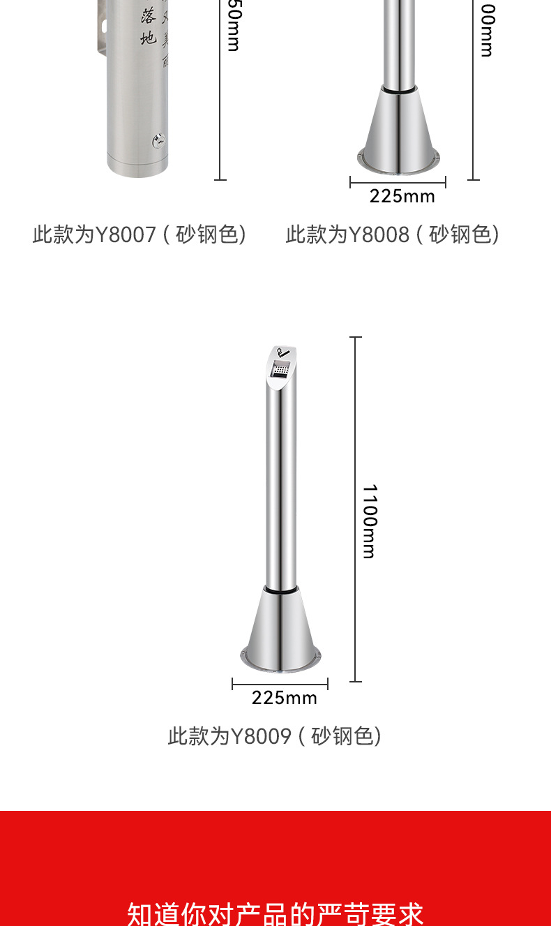 Sảnh khách sạn inox cột tro dọc thùng dập khói cố định cột tàn thuốc ngoài trời cột tro thùng rác
