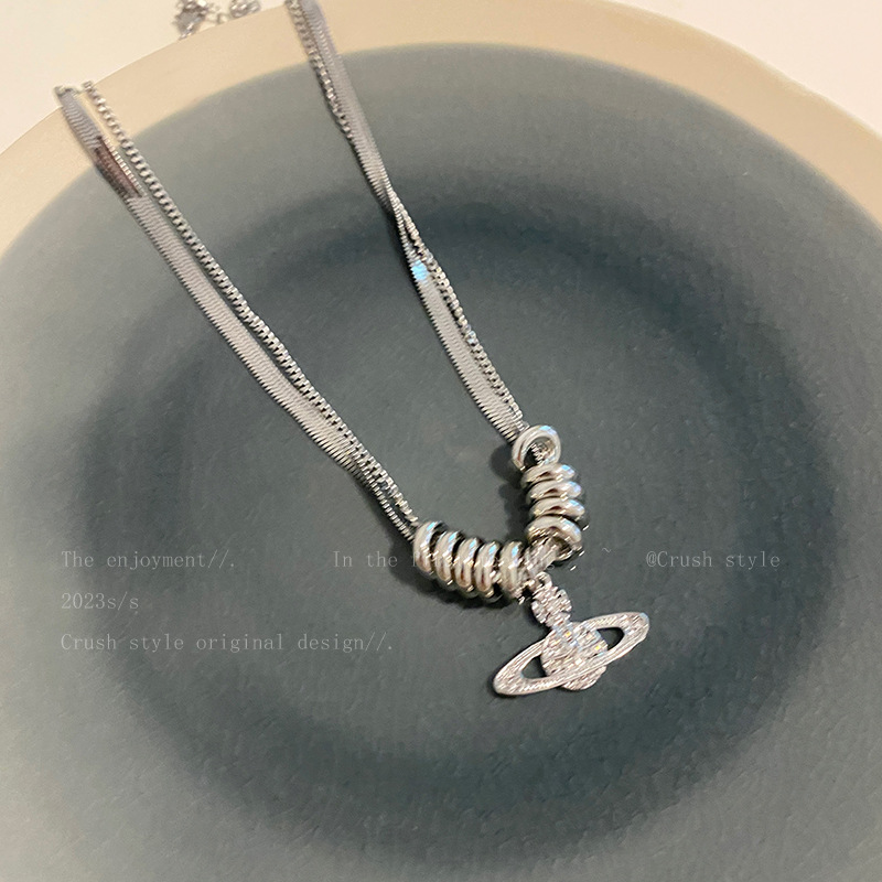 Sao Thổ Zircon Mặt Dây Chuyền Vòng Cổ Nữ Mùa Hè Gió Lạnh Cá Tính Phụ Kiện Đa Năng 2023 Mới Hợp Thời Trang Xương Đòn Dây Chuyền