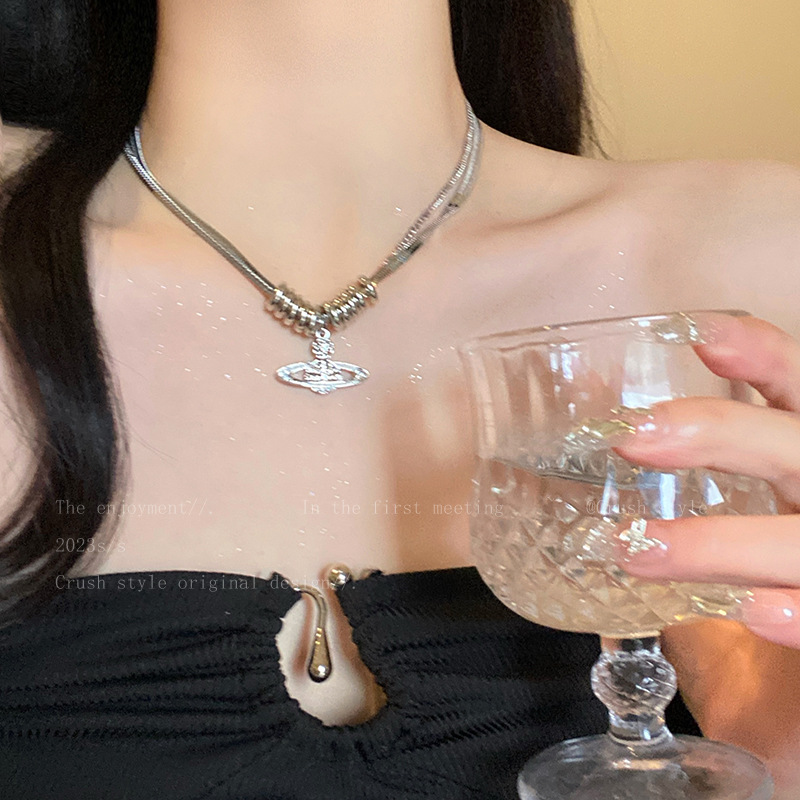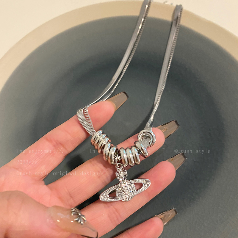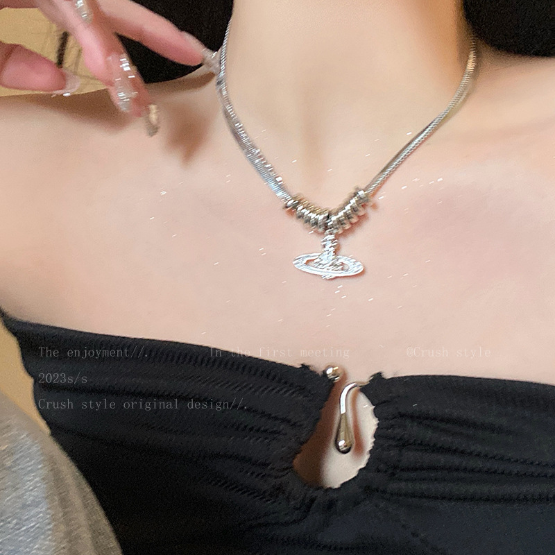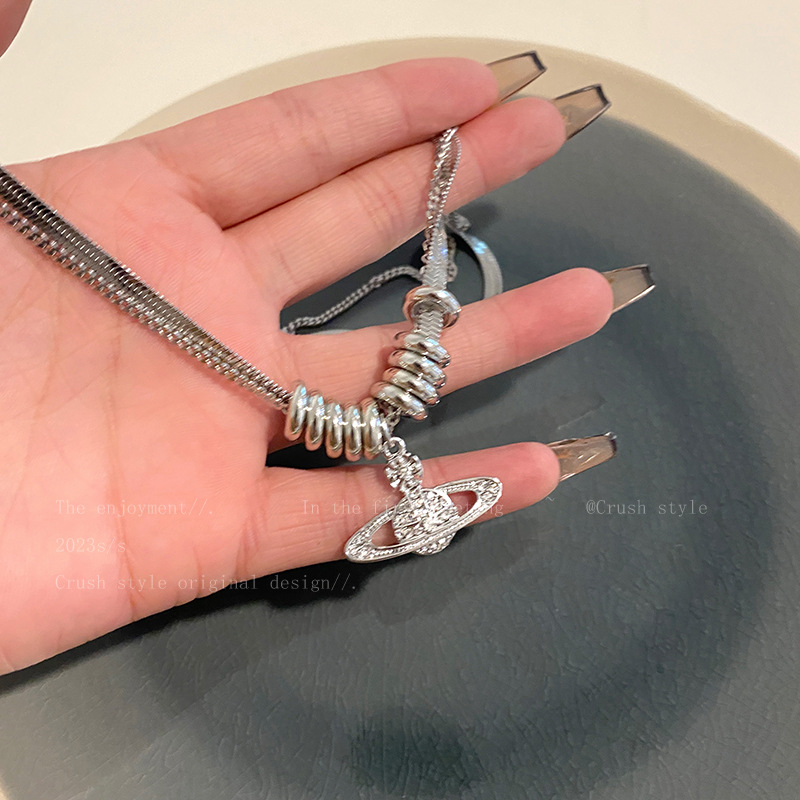 Sao Thổ Zircon Mặt Dây Chuyền Vòng Cổ Nữ Mùa Hè Gió Lạnh Cá Tính Phụ Kiện Đa Năng 2023 Mới Hợp Thời Trang Xương Đòn Dây Chuyền
