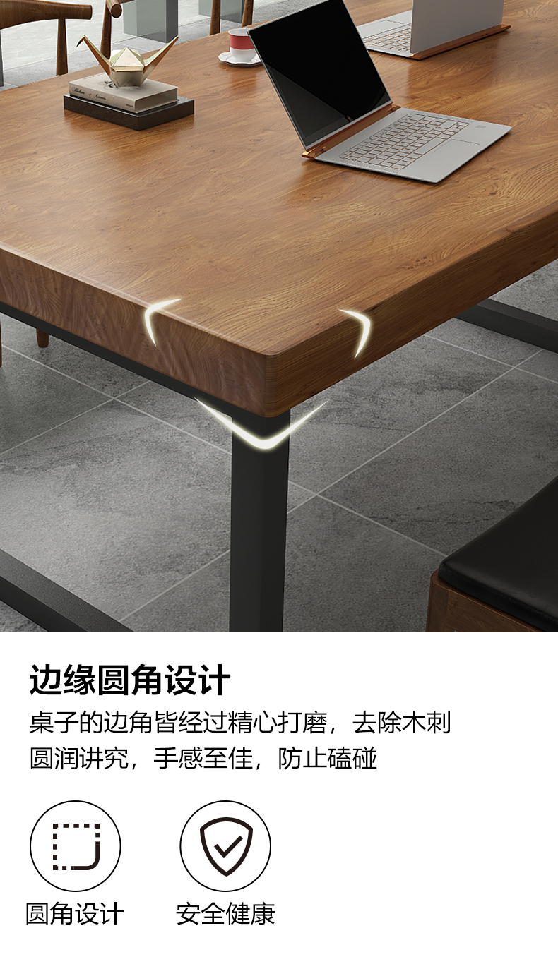 Sắt rèn bàn gỗ nguyên khối bàn dài công ty đào tạo nhân viên bàn máy tính đơn giản hiện đại bàn hội nghị bàn dài