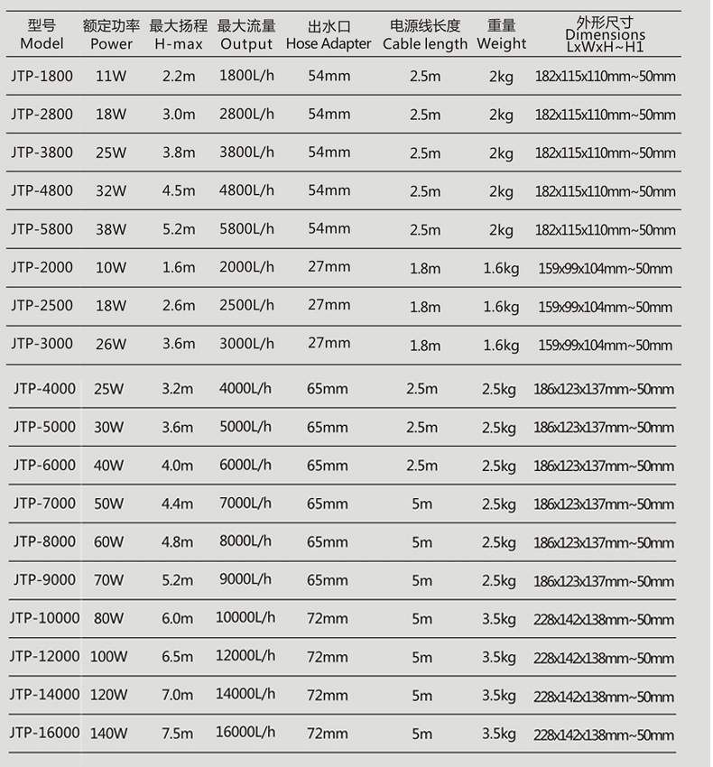 Nơi xuất xứ: Chiết Giang Số sản phẩm: Sensen JTP1800.5800 Thương hiệu: Sensen Jialu Danh mục sản phẩm: Máy bơm chìm Màu sắc: JTP1800/11 watt 2,2 mét 1800L/h cỡ nòng 20/25/32/2kg/JTP2800/18 watt 3 mét 2800L/h cỡ nòng 20 /25/32/2kg/JTP3800/25 watt 3,8 mét 3800L/h Cỡ nòng 20/25/32/2kg/JTP4800/32 watt 4,5 mét 4800L/h20/25/32/2kg/JTP5800/38 watt 5,2 mét 5800L /h Cỡ nòng 20/25/32/2KG/JTP2000/10W 1,6m 2000L/h Cỡ nòng 20/25/1,6KG/JTP2500/18W 2,6m 2500L/h Cỡ nòng 20/25/1,6KG/JTP3000/26W 3,6m 3000L / h cỡ nòng 20/25/1,6kg/JTP4000/25 watt 3,2 mét 4000L/h cỡ nòng 20/25/32/38/JTP5000/30 watt 3,6 mét 5000L/h cỡ nòng 20/25/32/38/JTP6000/40 watt 4 mét 6000L/h cỡ nòng 20/25/32/38/JTP7000/50 watt 4,4 mét 7000L/h cỡ nòng 20/25/32/38/JTP8000/60 watt 4,8 mét 8000L/h cỡ nòng 20/25/32/38/ 2.5 KG/JTP9000/70 watt 5,2 mét 9000L/h cỡ nòng 20/25/32/38/2,5kg/JTP10000/80 watt 6 mét 10000L/h cỡ nòng 20/25/32/38/3kg/JTP12000/100 watt 6,5 mét 12000L /h cỡ nòng 20/25/32/38/3KG/JTP14000/120 watt 7 mét 14000L/h cỡ nòng 20/25/32/38/3KG/JTP16000/140 watt 7,5 mét 16000L/h cỡ nòng 20/25/32/ 38 /3KG/JTP16000/140 Watt 7,5 mét 16000L/h Cỡ nòng 20/25/32/38/3KG Kích thước: khác nhau ở mỗi thông số kỹ thuật Mục đích chính: bơm, tái chế Trọng lượng: khác nhau ở mỗi thông số kỹ thuật Chức năng: bơm, tái chế Chất liệu: Dù là nhựa chéo -border Nguồn cung cấp dành riêng cho xuất khẩu: Không Số lượng đóng hộp: Thông số kỹ thuật khác nhau Kiểu dáng khác nhau: Ngang Dù nhập khẩu: Không Danh mục: Thiết bị bể cá