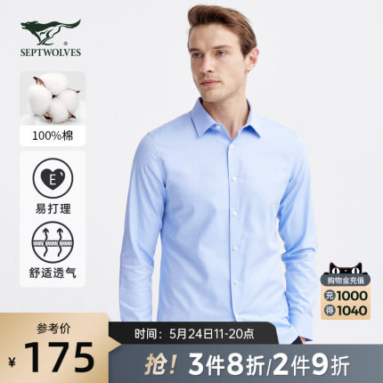 Septwolves dành cho nam giới áo sơ mi dài tay trơn màu 2021 mùa thu mới kinh doanh giản dị chuyên nghiệp áo sơ mi chính thức