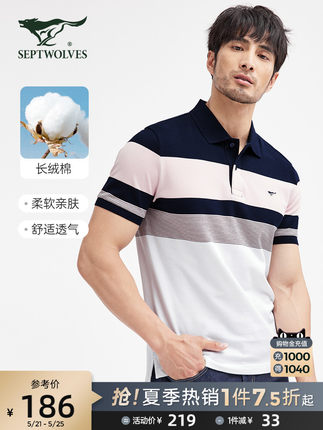 Septwolves nam polo áo sơ mi nam công sở sọc cotton thoáng khí lỏng mùa hè mới ve áo thun ngắn tay