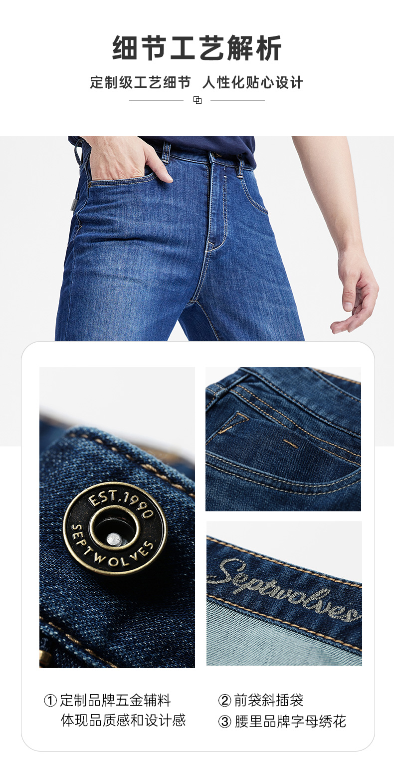 Septwolves quần jean nam quần mỏng của nam giới quần thẳng mùa hè tất cả các kết hợp đàn hồi mát mẻ xu hướng quần dài nam giản dị