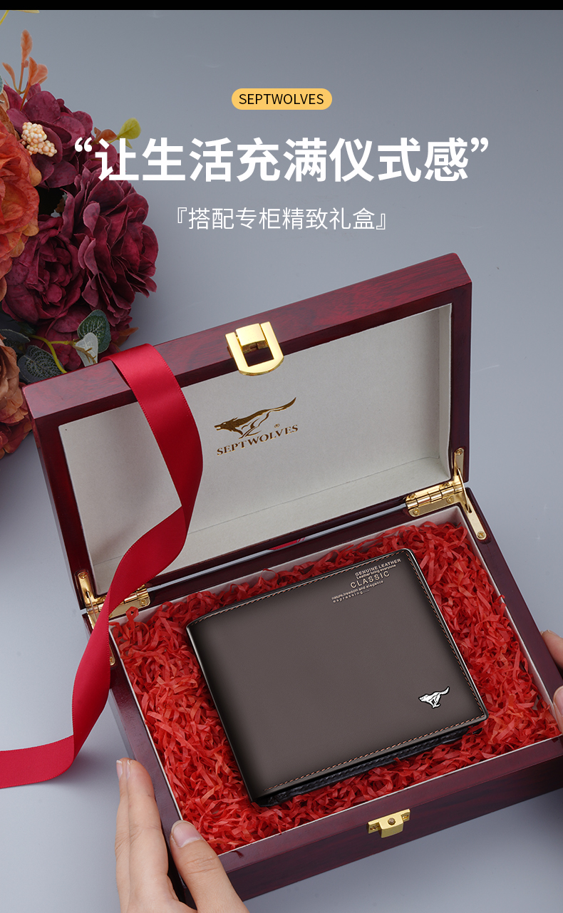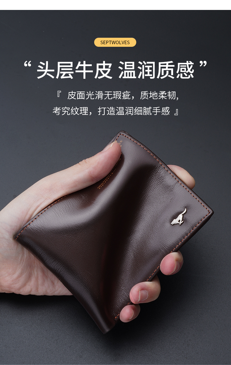 Septwolves ví nam 2021 mới lớp trên cùng da bò của nam giới da thật ví nam ngắn giản dị ví nam sinh viên