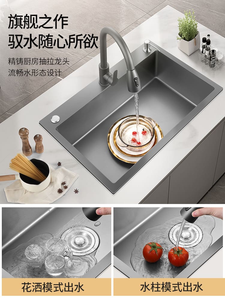 SG8Y bán buôn bồn rửa nhà bếp lớn đơn khe cắm màu xám bồn rửa chén bằng thép không gỉ 304 nano bể bơi hộ gia đình chậu rau là thiết bị nằm trong danh mục Đồ nhà hàng > Chậu rửa, được thiết kế chuyên dụng cho các nhà hàng cần sự tiện nghi và chuyên nghiệp.