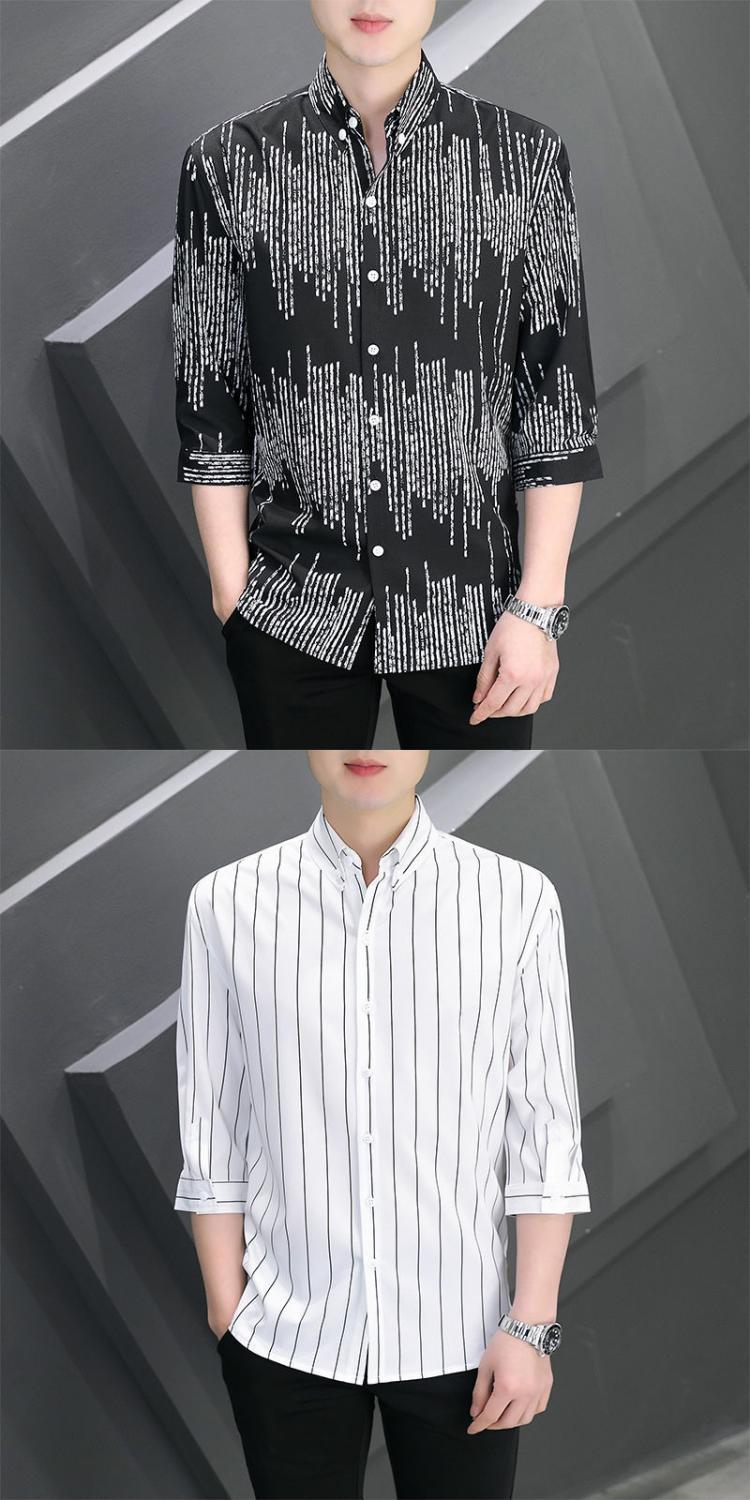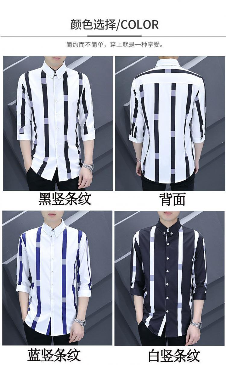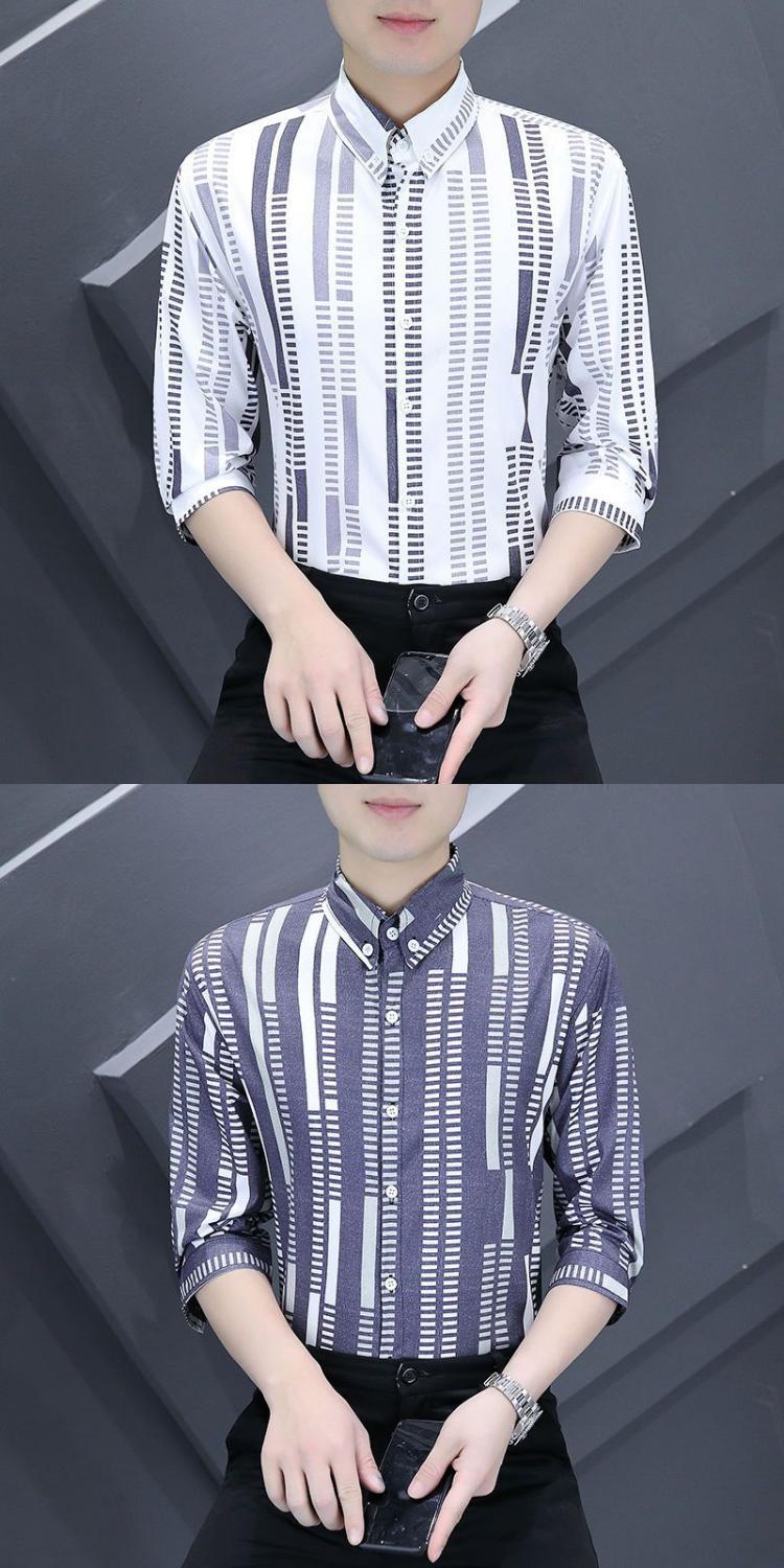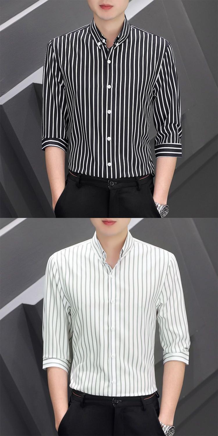Shanli Dadi Áo sơ mi nam mỏng tay ba phần tư Phong cách Hàn Quốc hợp thời trang Áo sơ mi sọc chống nhăn chống nhăn giản dị tay áo trung bình ngắn tay