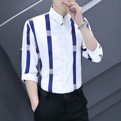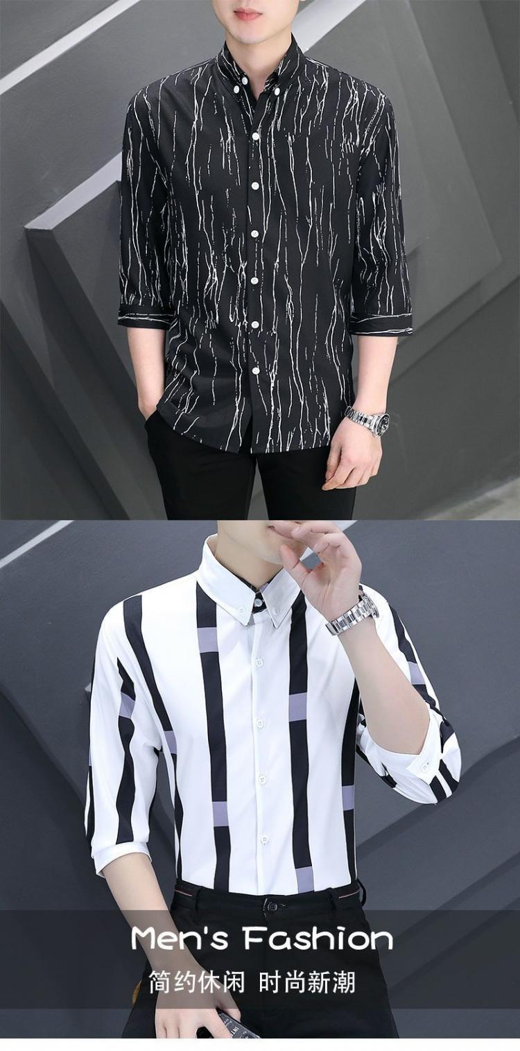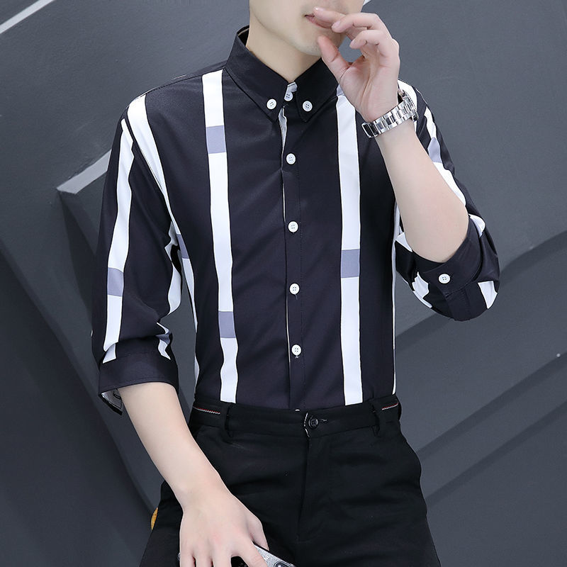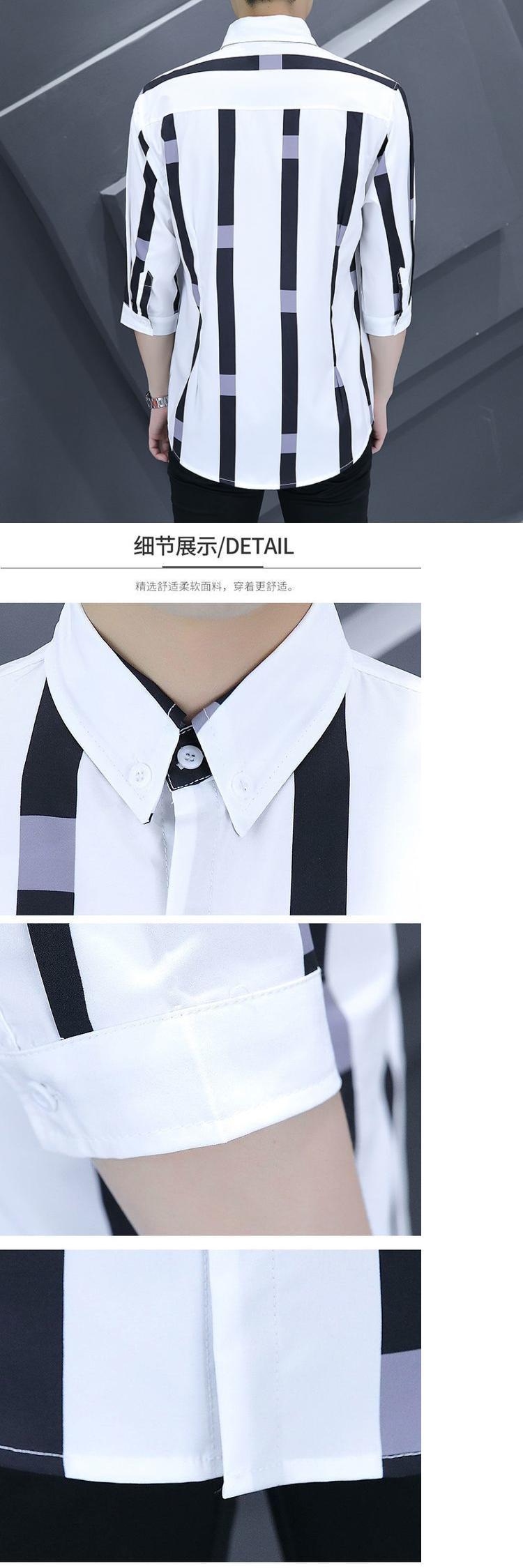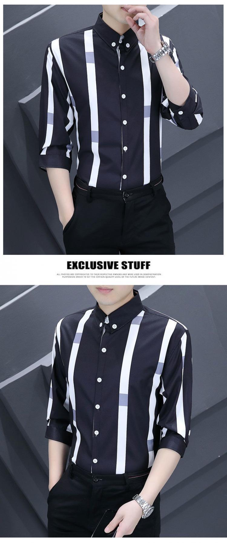 Shanli Dadi Áo sơ mi nam mỏng tay ba phần tư Phong cách Hàn Quốc hợp thời trang Áo sơ mi sọc chống nhăn chống nhăn giản dị tay áo trung bình ngắn tay