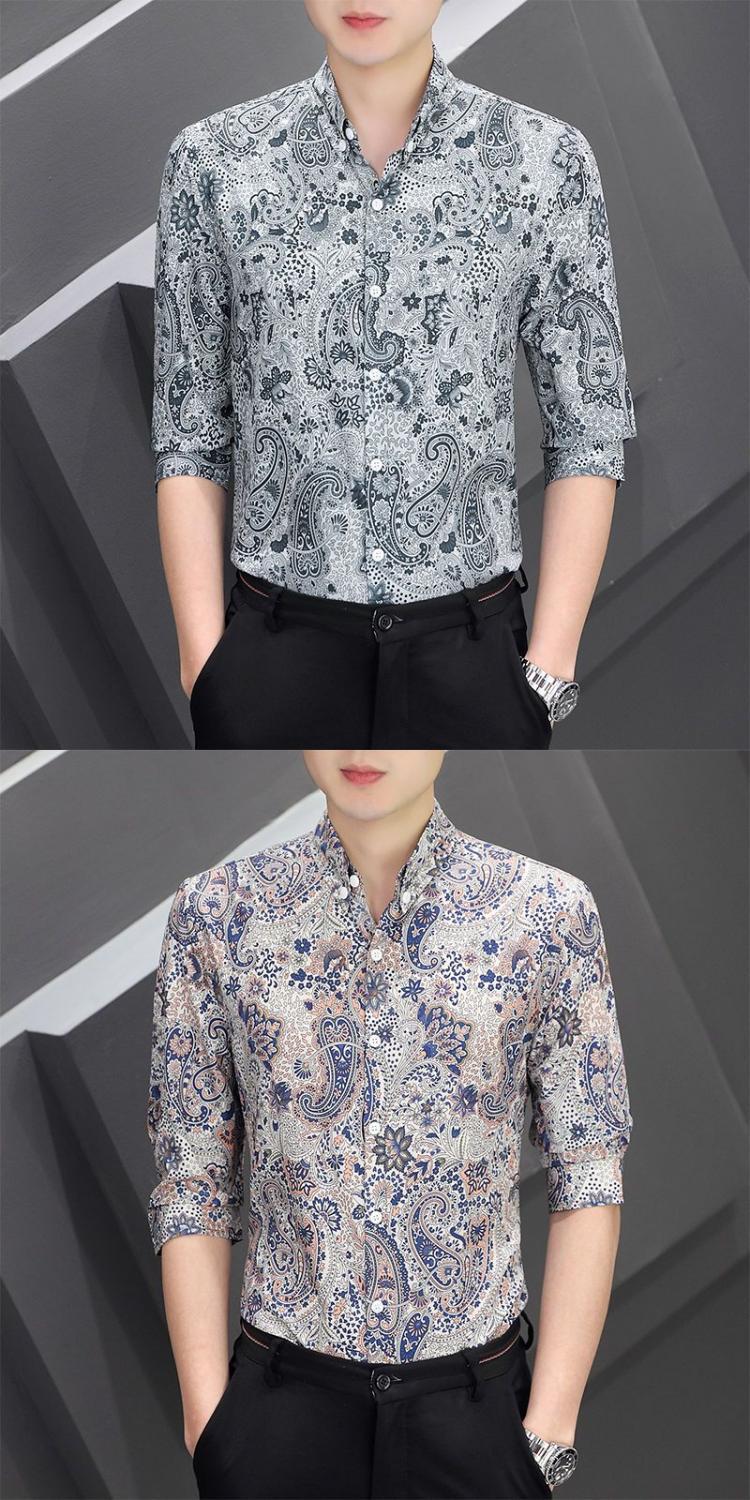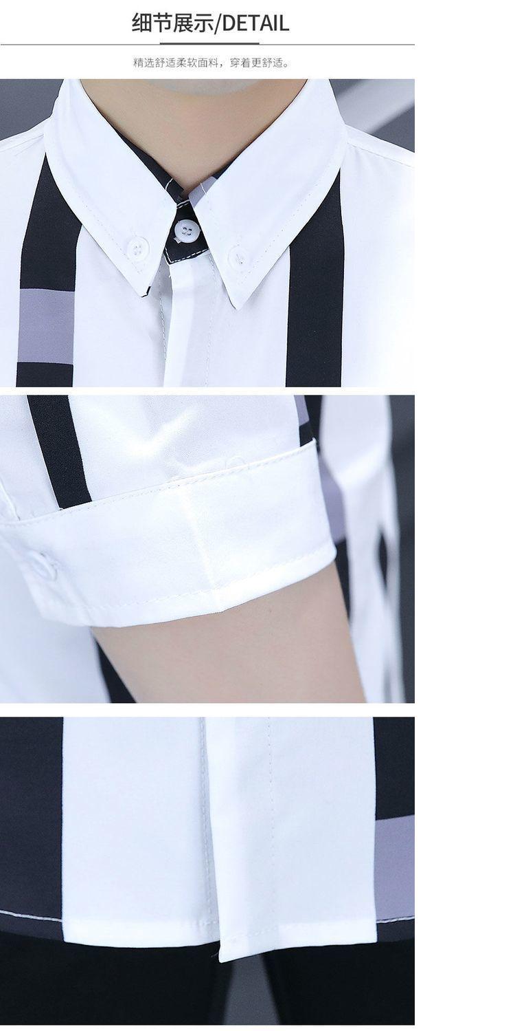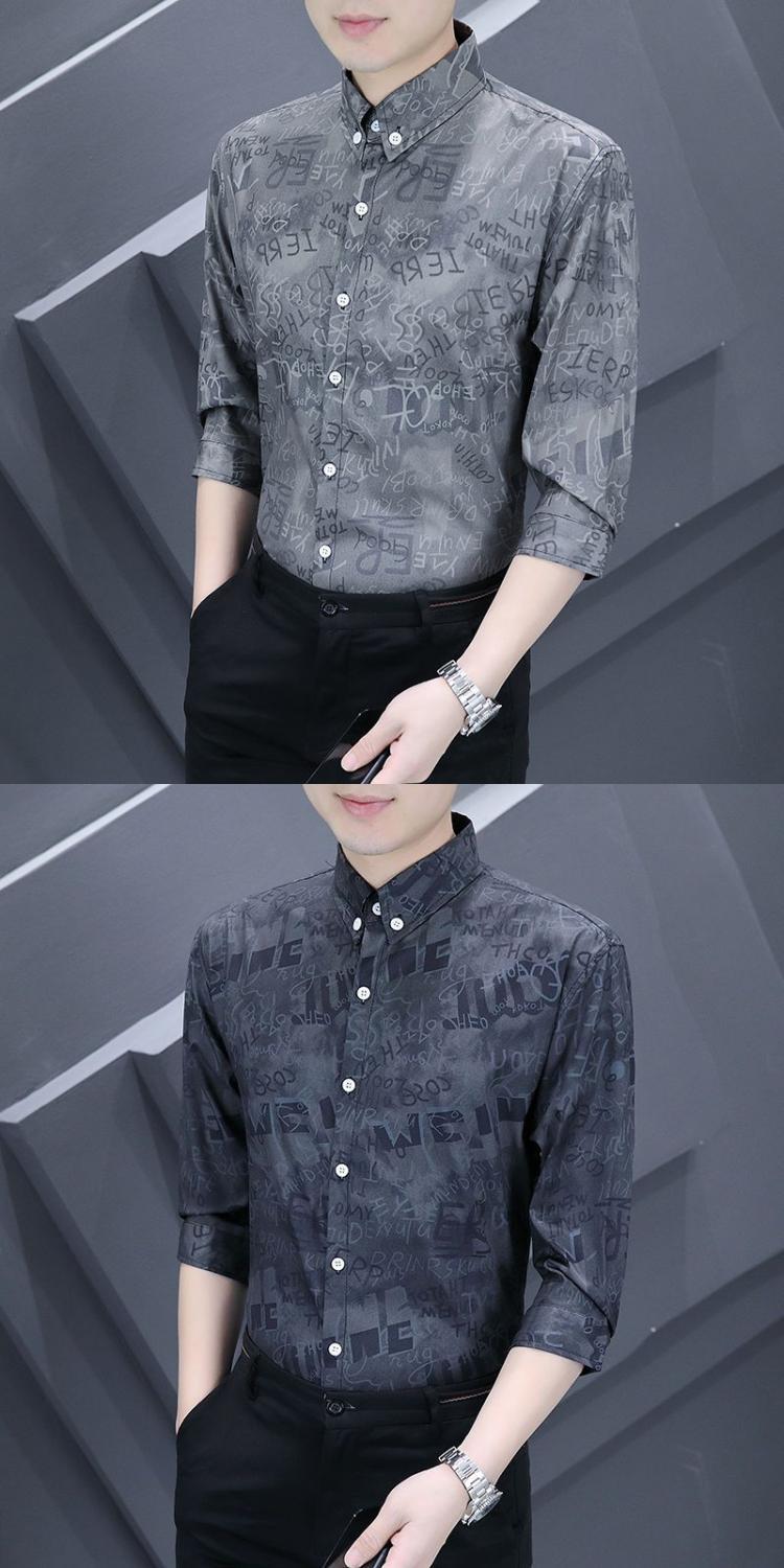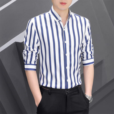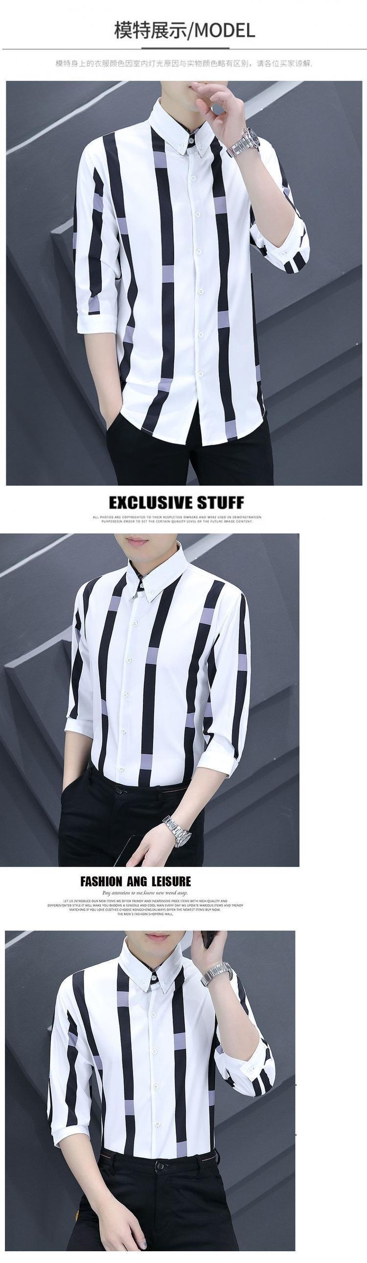 Shanli Dadi Áo sơ mi nam mỏng tay ba phần tư Phong cách Hàn Quốc hợp thời trang Áo sơ mi sọc chống nhăn chống nhăn giản dị tay áo trung bình ngắn tay