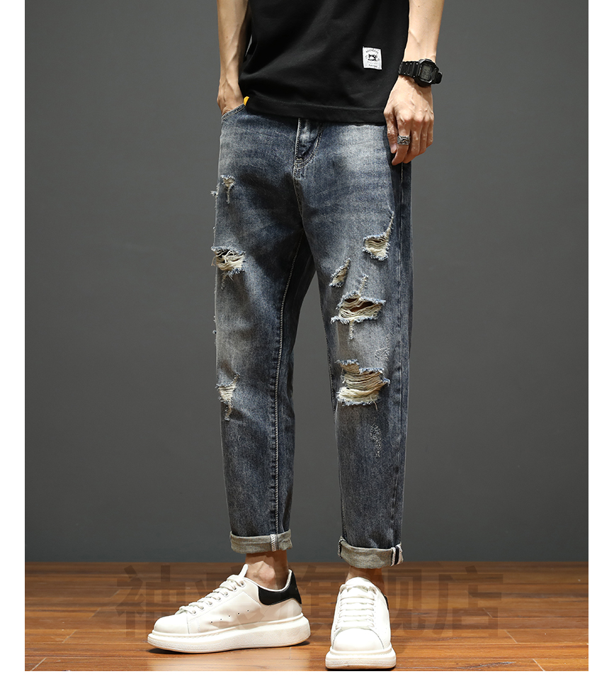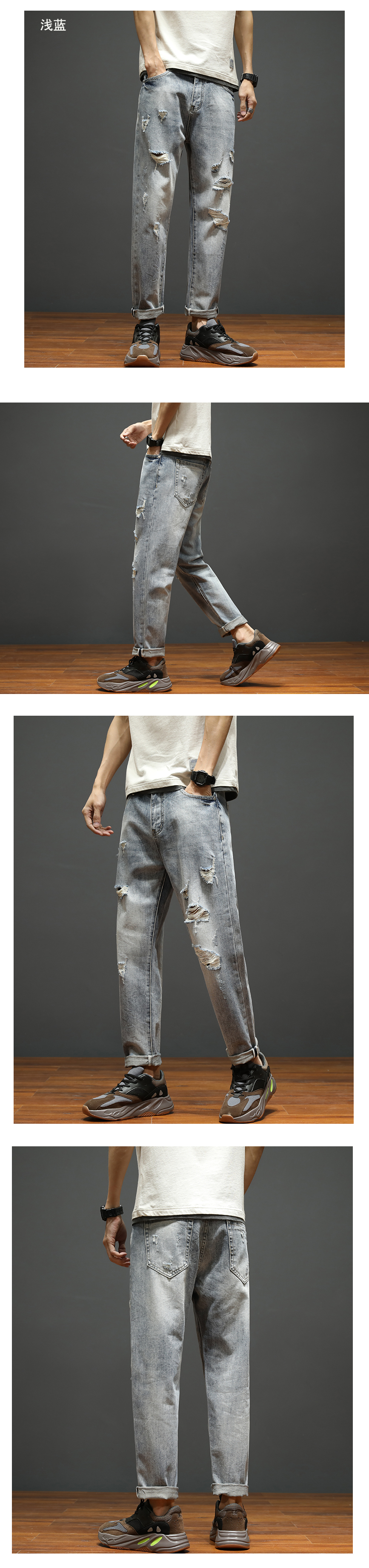 Shawn Yue Chao thương hiệu xé quần jean nam mùa hè cotton chân nhỏ quần nam giới hip-hop phong cách quần tất nam cotton