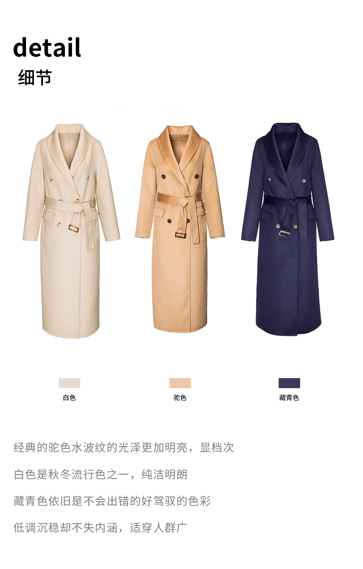 Hoa văn: Đồng màu Màu sắc: Camel/Xanh nước biển/Màu be/Màu be Danh mục sản phẩm: Dù áo khoác len nữ xuyên biên giới Nguồn: Không Kích thước: S/M/L/L Phiên bản: Thẳng Thành phần vải chính: 90% (không bao gồm) -95% (bao gồm) Loại phong cách: Đi làm Tính cách Tay áo thông thường Thành phần vải chính 2 Hàm lượng: 30% trở xuống Trọng lượng gram: 1,4kg Thành phần vải chính: Len Chiều dài: Mở rộng (100cm