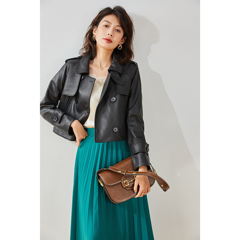 Shenghong 22 mùa xuân mới da nhỏ ngắn áo khoác da cừu mỏng áo khoác da nữ 13068