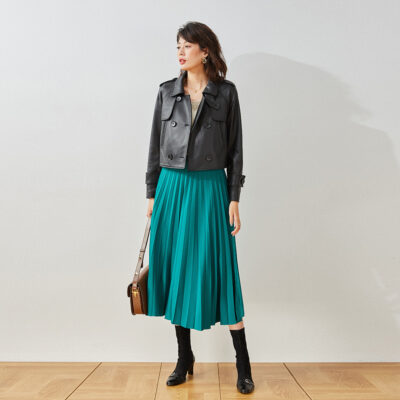 这款皮衣简洁利落,简约时尚的小短款,没有多余花哨的设计。