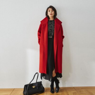 Shenghong 22 Tính Khí Mới Cổ Áo Đứng Thanh Mảnh Dài Khoác Cashmere 2 Mặt Áo Khoác Len Nữ Thu Đông 13011
