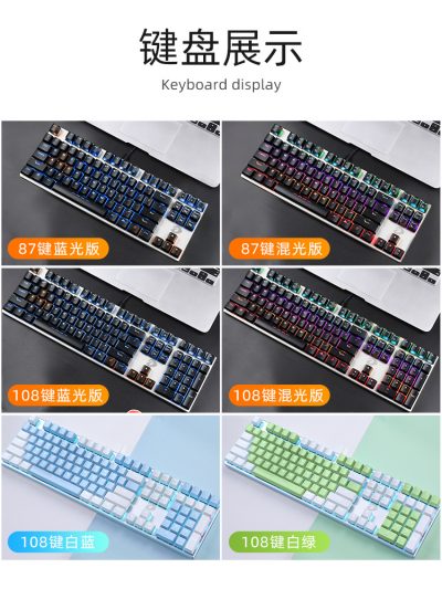 - 颜色分类: 黑色蓝光版-87键 黑色混光版-87键 黑色蓝光版-108键 黑色混光版-108键 蓝白色蓝光版-87键 绿白色蓝光版-87键 白绿色蓝光版-87键 白蓝色蓝光版-108键 蓝白色蓝光版-108键 白粉色蓝光版-108键 粉白色蓝光版-108键 白绿色蓝光版-108键 绿白色蓝光版-108键