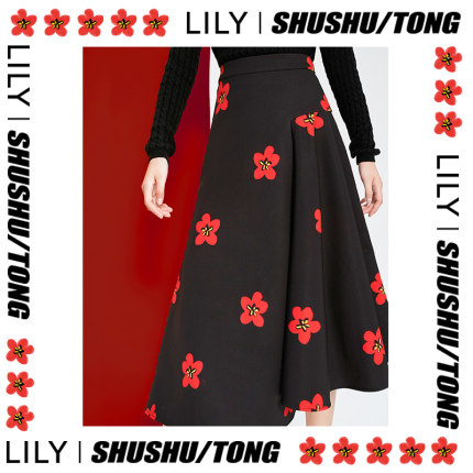 [SHushU / TONG tên chung] LILY2019 mùa đông mới của phụ nữ váy đen eo cao A-line 6132