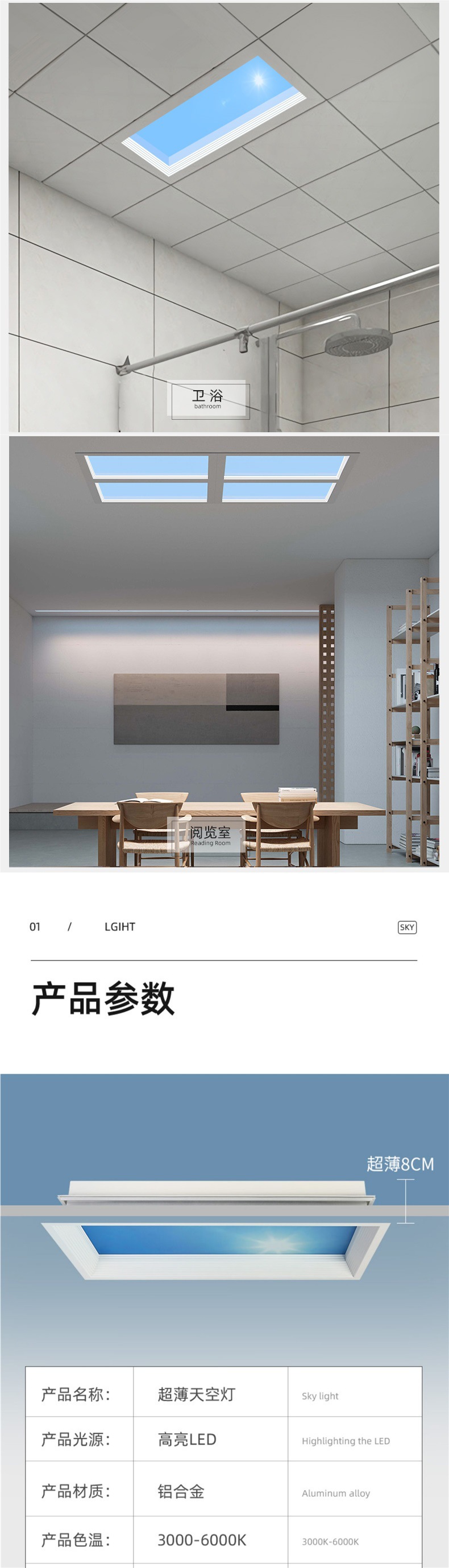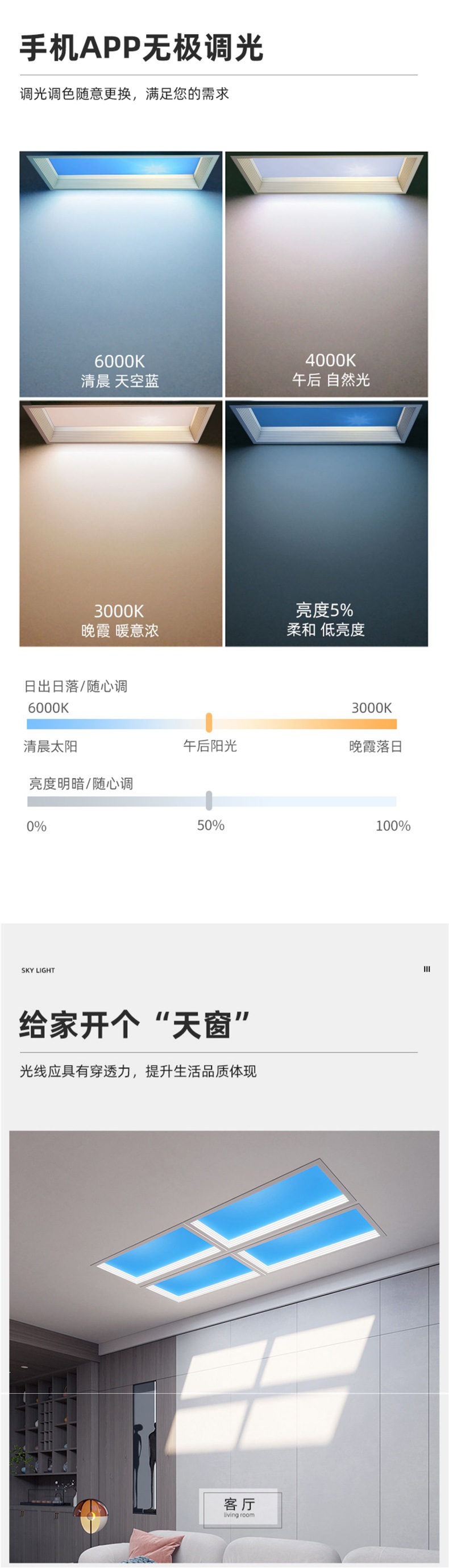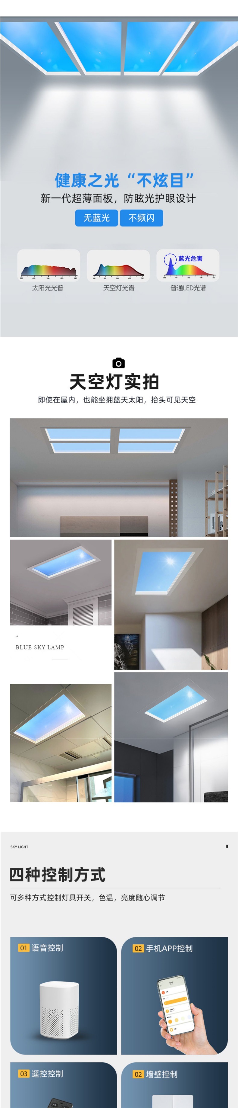 Siêu mỏng bầu trời thông minh tích hợp đèn LED âm trần nhà bếp phòng tắm giếng trời xanh trời ánh sáng giả mặt trời bầu trời rõ ràng ánh sáng