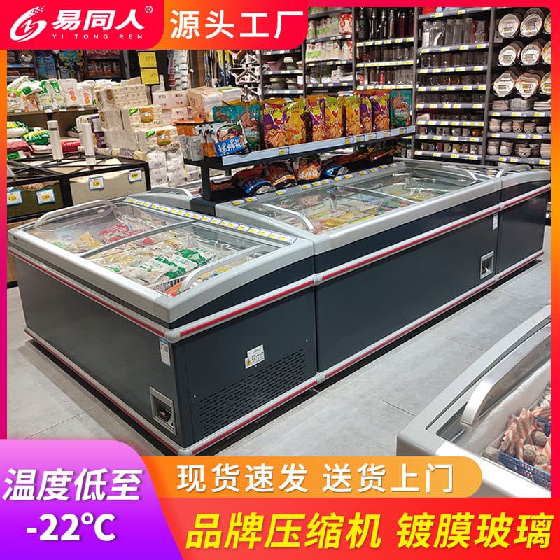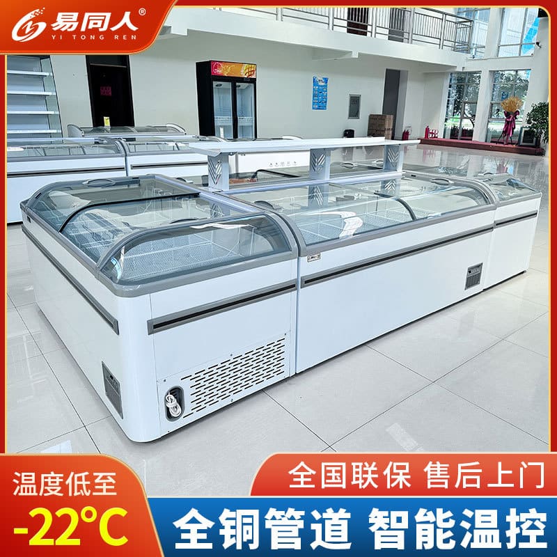超市弧面无霜组合岛柜商用冰柜卧式冷冻柜水饺海鲜食品冷藏展示柜