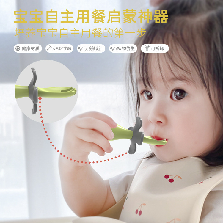 Silicone tay cầm ngắn muỗng nĩa cho bé cánh hoa huấn luyện muỗng nĩa trẻ em bộ đồ ăn lưu trữ di động cho bé thực phẩm bổ sung bộ đồ ăn