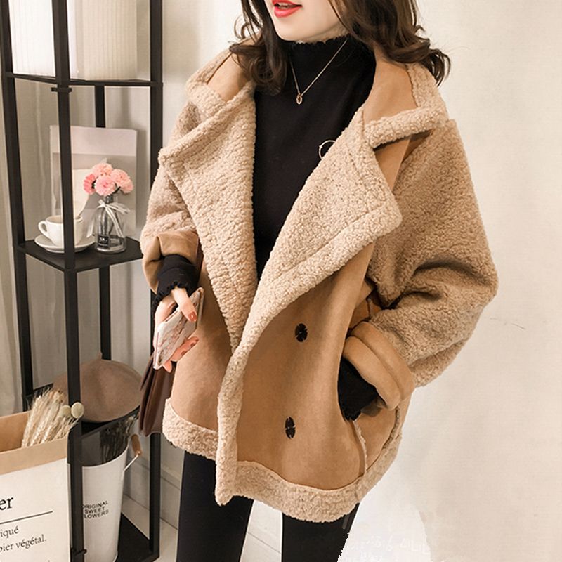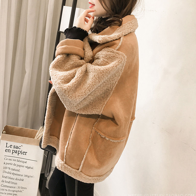 Size Lớn Nữ Mỡ Quần Áo Xuân Thu Với Lông Thú Và Thịt Cừu Áo Khoác Da Lộn Dày Áo Khoác Xe Máy 200 Catties