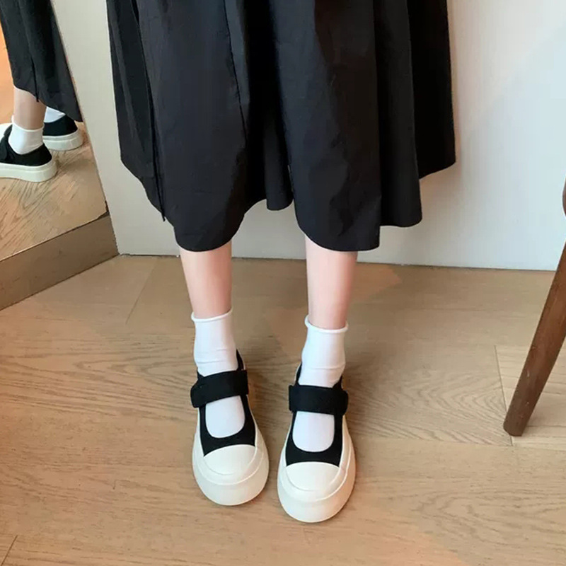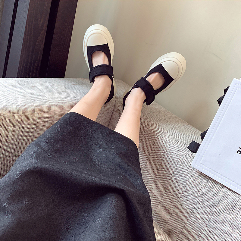 Size Nhỏ Giày Vải Nữ 313233 Mary Jane Giày Đơn Mùa Xuân Muffin Khóa Dán 34 Nhỏ Màu Trắng Giày Đế Giày Nữ Mùa Hè