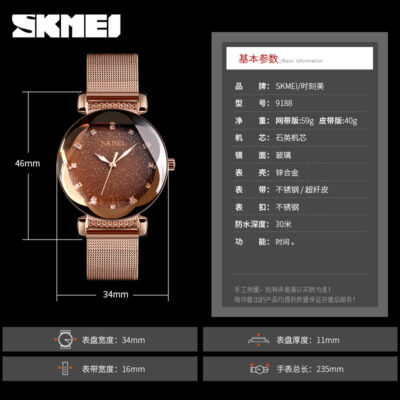 Skmei xu hướng thời trang đồng hồ nữ rung nổ dây thép đỏ dây bầu trời đầy sao nữ sinh viên ngoại thương đồng hồ thạch anh