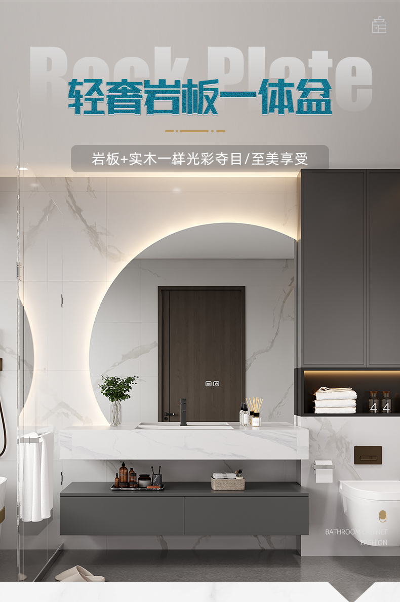 Slate tích hợp nửa vòng tròn gương tủ phòng tắm phòng tắm tối giản hiện đại chậu rửa chậu rửa kết hợp chậu rửa