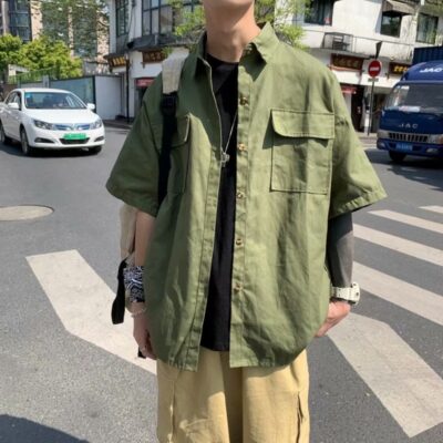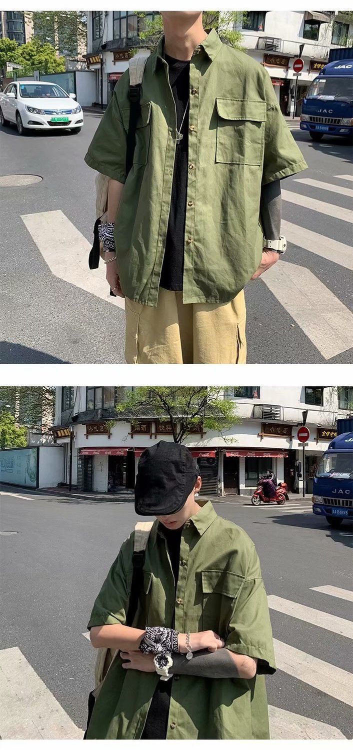 Slender tooling áo sơ mi nam mùa hè giản dị Nhật Bản đẹp trai theo phong cách Hồng Kông retro phóng khoáng rất cổ tích hàng đầu xu hướng