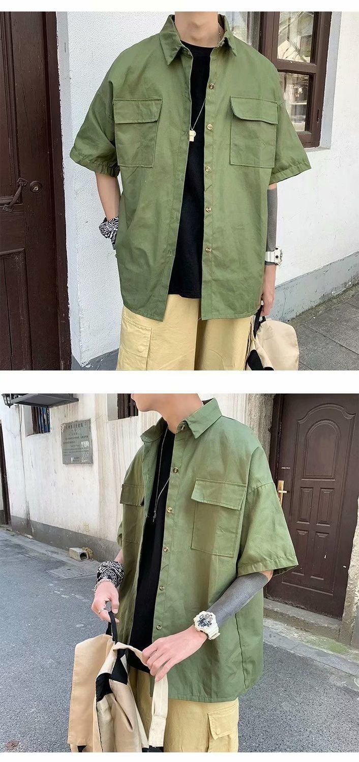 Slender tooling áo sơ mi nam mùa hè giản dị Nhật Bản đẹp trai theo phong cách Hồng Kông retro phóng khoáng rất cổ tích hàng đầu xu hướng
