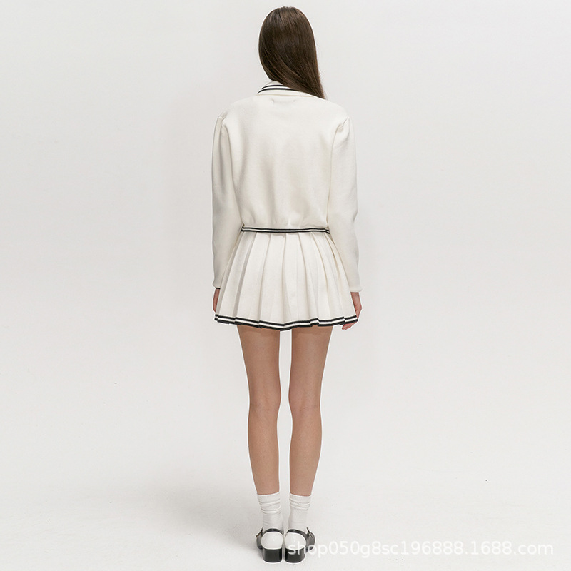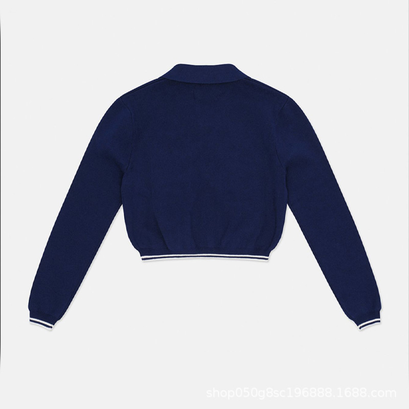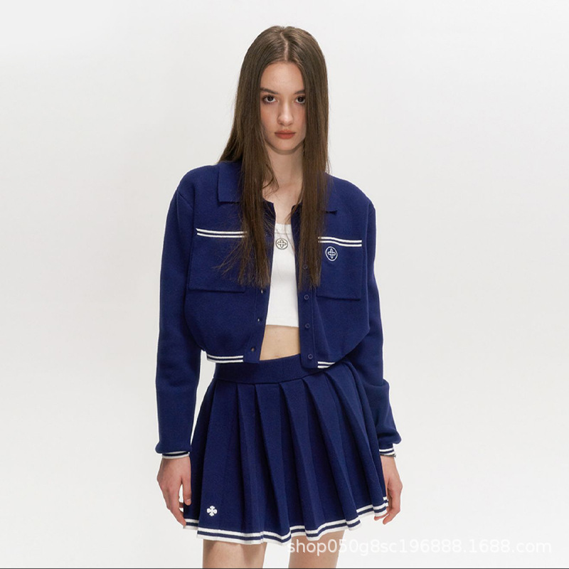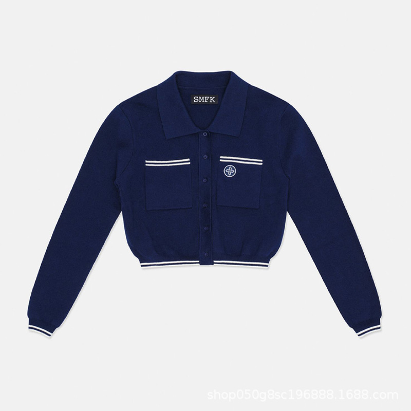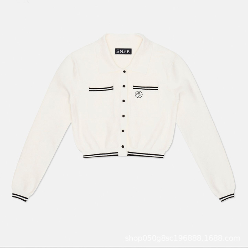 SMFK phong cách đại học cashmere đan áo khoác ngắn hươu trắng cùng màu tương phản sọc pha trộn áo khoác ngắn nữ mùa xuân và mùa thu