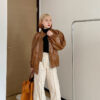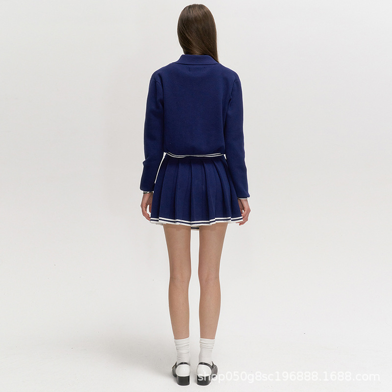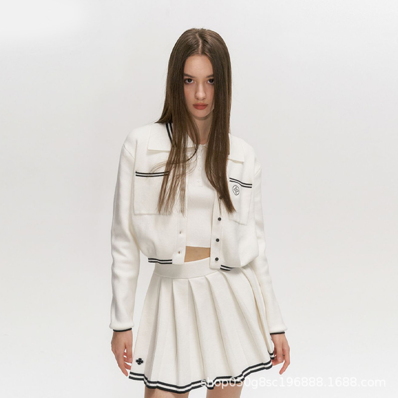 SMFK phong cách đại học cashmere đan áo khoác ngắn hươu trắng cùng màu tương phản sọc pha trộn áo khoác ngắn nữ mùa xuân và mùa thu