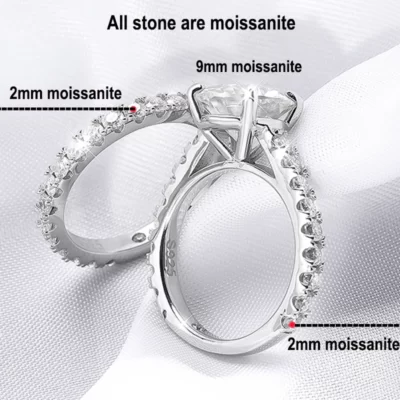 Each stone:3ct main stone and 2mm small moissanite,all stone are moissanite stone