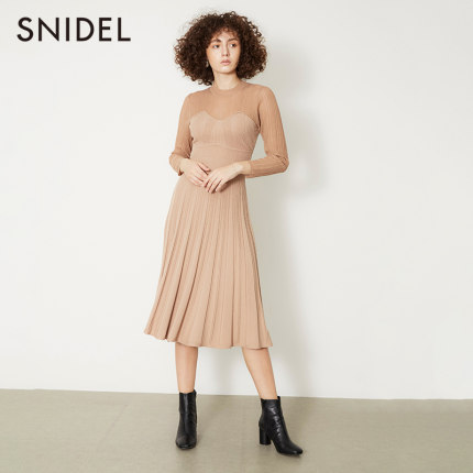 SNIDEL2019 thu đông phối ren mới thanh lịch phối ren đan váy đầm SWNO195064