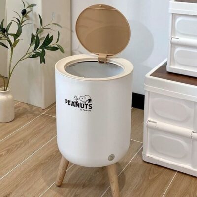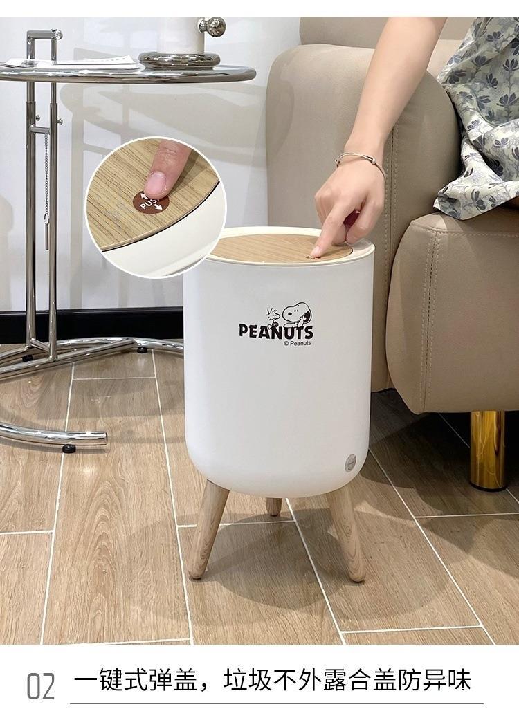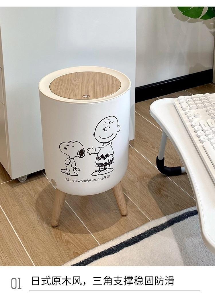 Snoopy thùng rác gia đình mini dễ thương có nắp đậy phòng khách phòng ngủ ins gió thùng rác nhỏ có thể ấn vào sọt rác