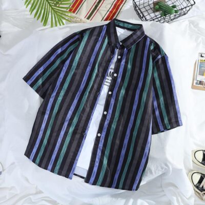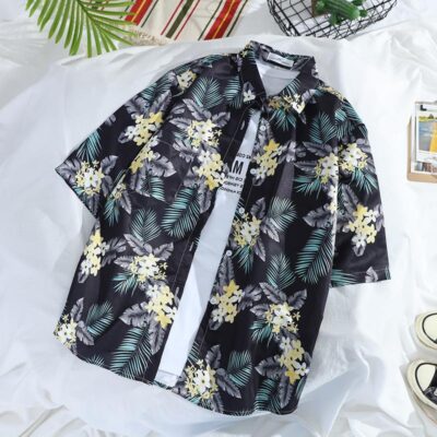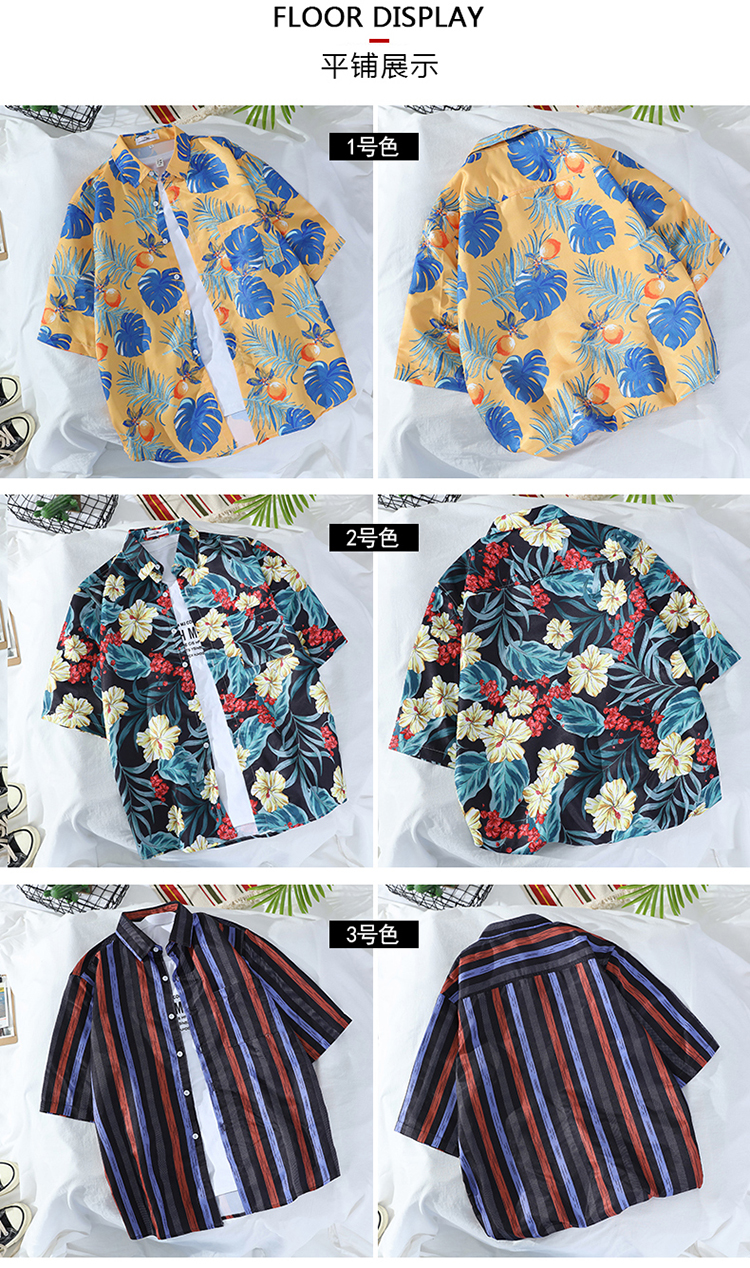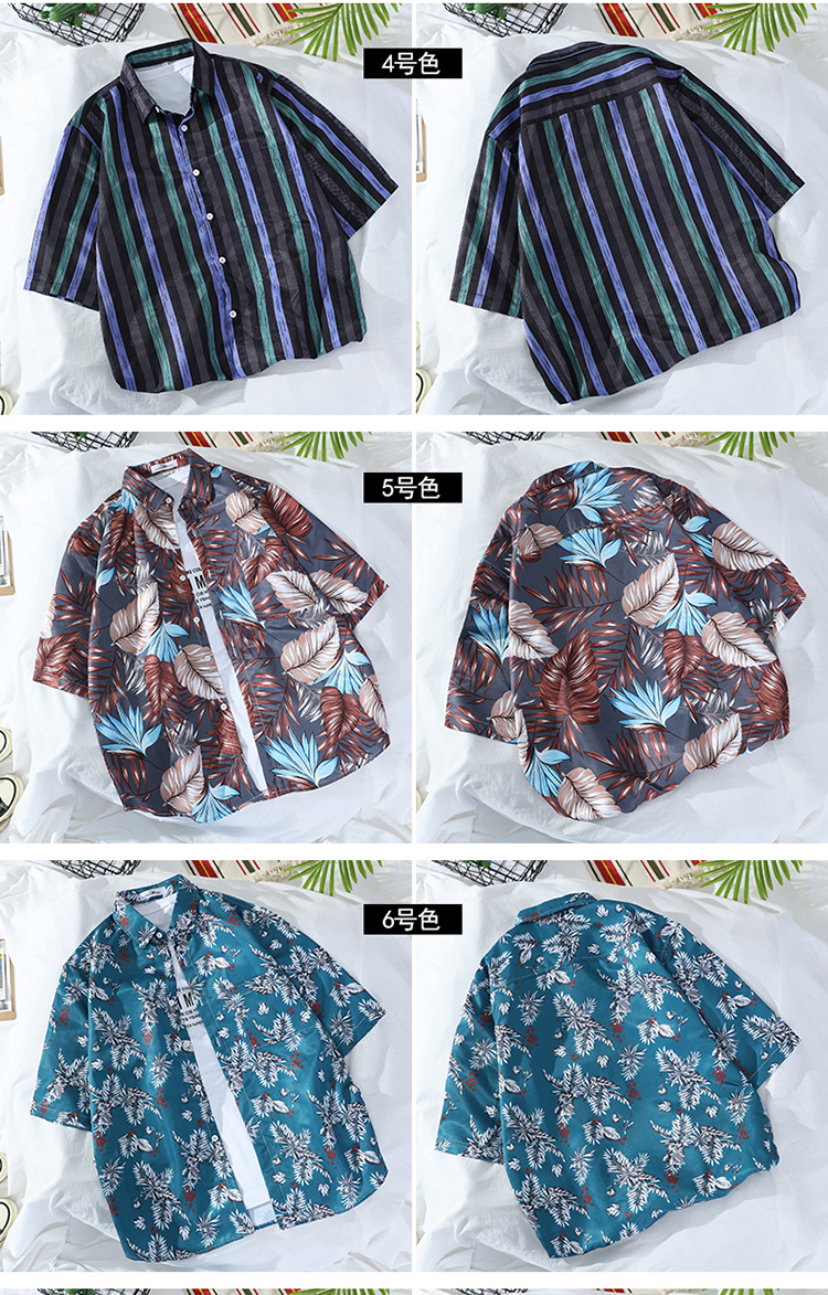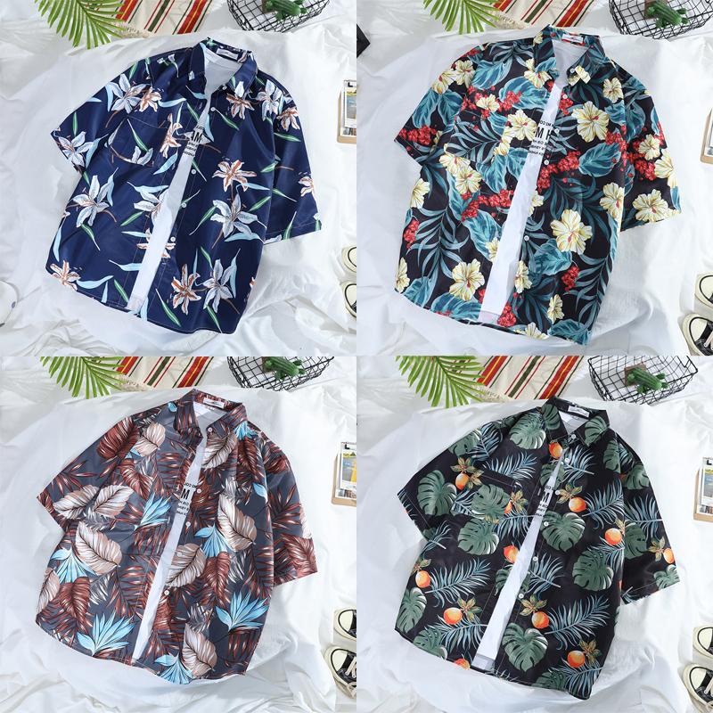 Sơ mi hoa nam ngắn tay inch linh sam Áo thun bên bờ biển kỳ nghỉ bãi biển gió quần áo hợp thời trang ins Hawaii sơ mi giản dị