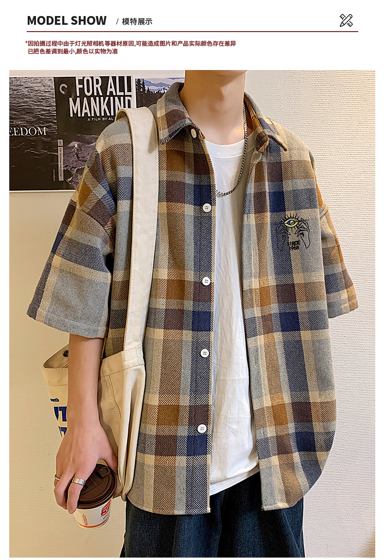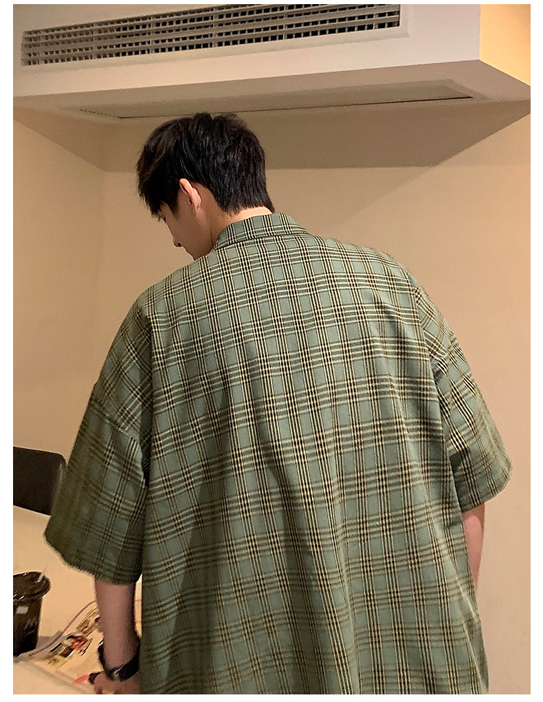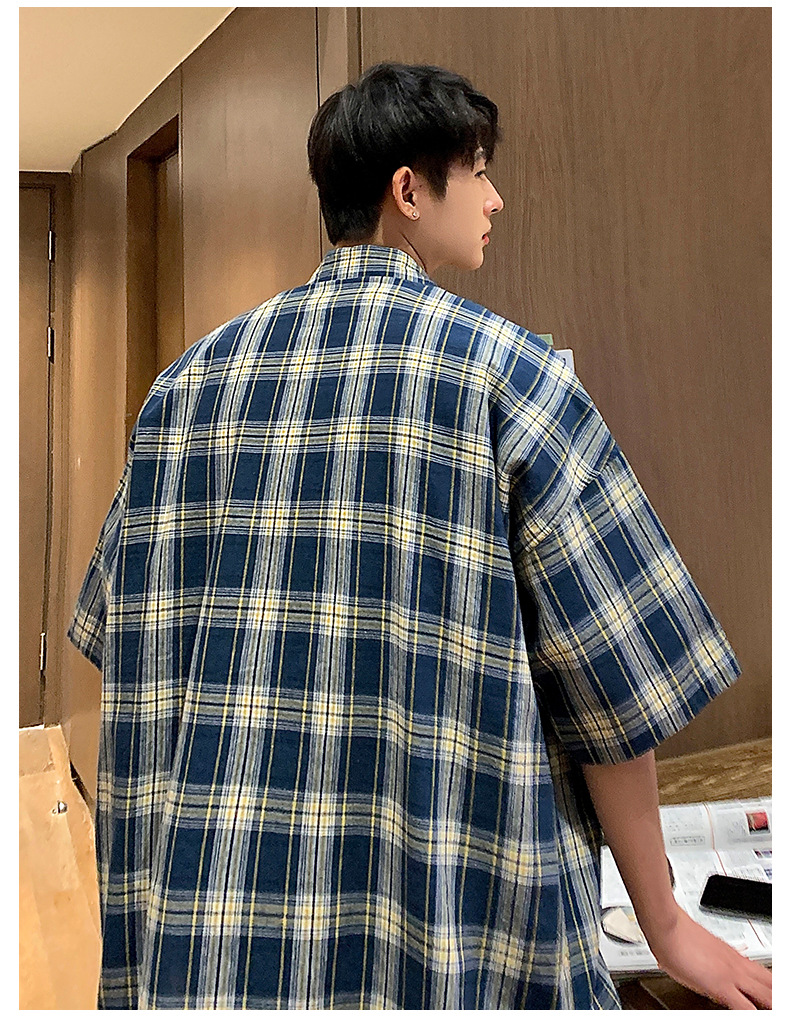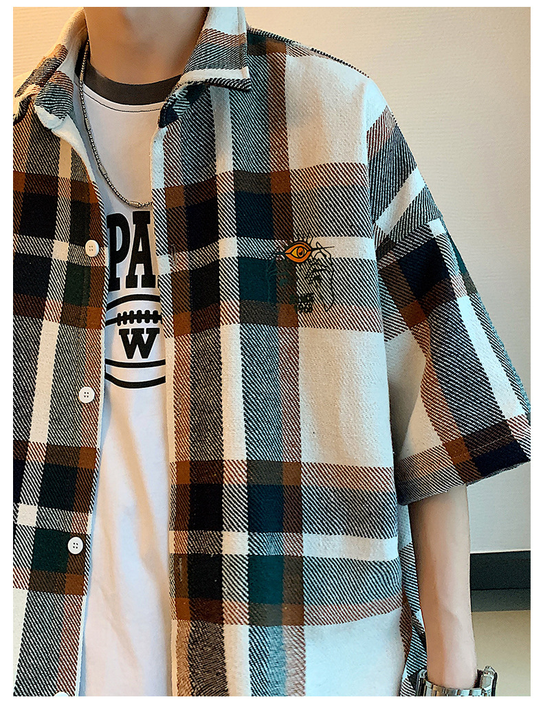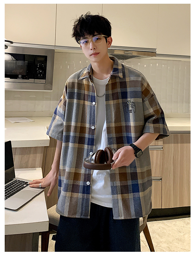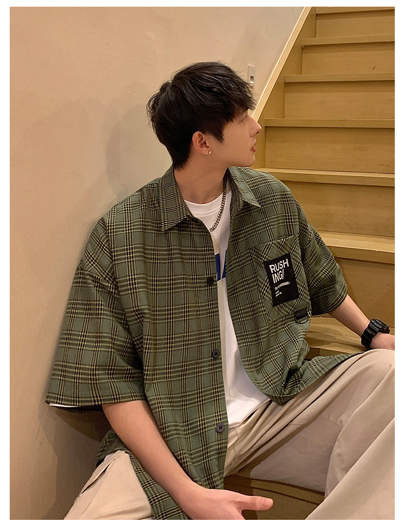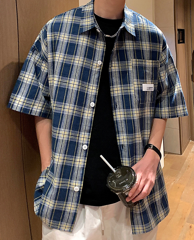 Sơ mi kẻ sọc nam ngắn tay mùa hè cao cấp nặng sơ mi phong cách cổ điển Mỹ ins top coat